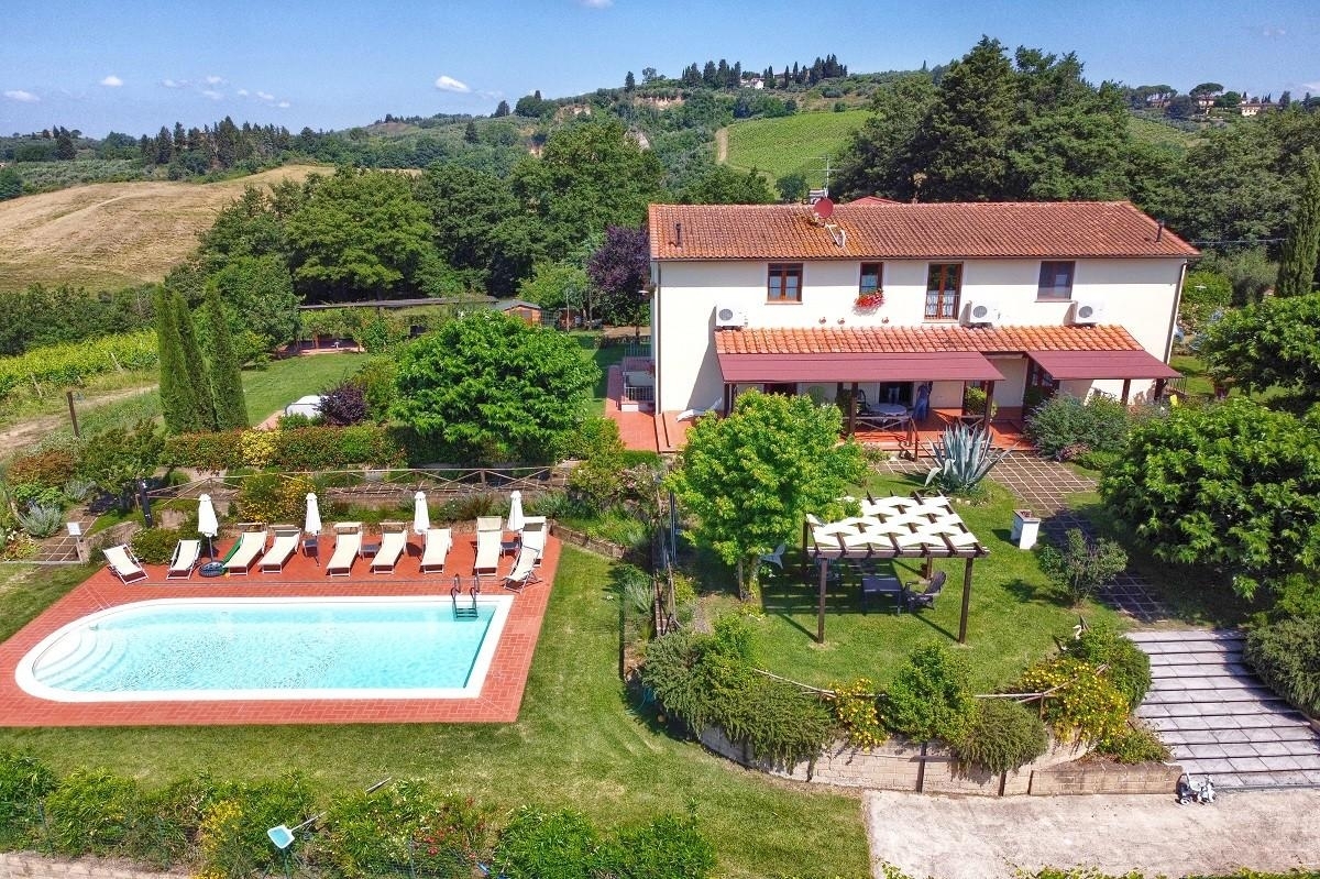Rif: l' agenzia immobiliare cinelli propone in vendita una bellissima proprietà nella prima campagna di certaldo, a circa 8 km dal centro del paese, in posizione incantevole con vista mozzafiato sulla campagna circostante. Porzione di fabbricato ex colonico completamente ricostruito nel 2006, circondato da un ampio giardino su 3 lati con piscina. L'appartamento è disposto su due livelli oltre al piano interrato per complessivi mq. 360 ca. Di cui 240 mq. Tra il piano terra ed il piano primo e 120 mq. Al piano interrato il quale ha accesso sia dall'interno che dall'esterno. L'immobile è stato completamente ricostruito con struttura in cemento armato e con finiture tipiche toscane e si presenta in ottime condizioni di manutenzione. L'appartamento in oggetto deriverà dall'unione di due appartamenti e sarà cosù composto: al piano terra ampio soggiorno, cucina, sala da pranzo, bagno e ripostiglio, con scala d'accesso al piano seminterrato, al piano primo collegato con scala interna, 4 camere, 2 bagni e due ripostigli. I locali al piano seminterrato sono utilizzati attualmente come lavanderia e locali di servizio. La proprietà è attualmente utilizzata per gli affitti turistici, con una ottima resa. la proprietà è inoltre fornita di pannelli fotovoltaici per la produzione di energia elettrica (circa 6,8 kw). Il fabbricato è circondato da un ampio parco su tre lati di circa 1500 mq. Con piscina panoramica. La proprietà è molto interessante e si presta benissimo sia per abitazione privata che per gli affitti turistici. Bellissima la posizione con esposizione a sud ovest. I primi servizi si trovano a circa 3 km. L'immobiliare cinelli ci tiene a precisare che le caratteristiche tecniche, disposizione interna e accessori indicati, poterebbero in alcuni casi essere diversi dall'effettivo stato di fatto dell'immobile, l'agenzia immobiliare declina ogni responsabilità per eventuali involontarie incoerenze. Per garantire la privacy, la posizione dell'immobile è solo indicativa della zona e l'indirizzo inserito nell'annuncio non è quello reale, per maggiori dettagli, vi invitiamo a contattare il ns. Ufficio ai seguenti numeri: Oppure inviandoci una mail all'indirizzo: