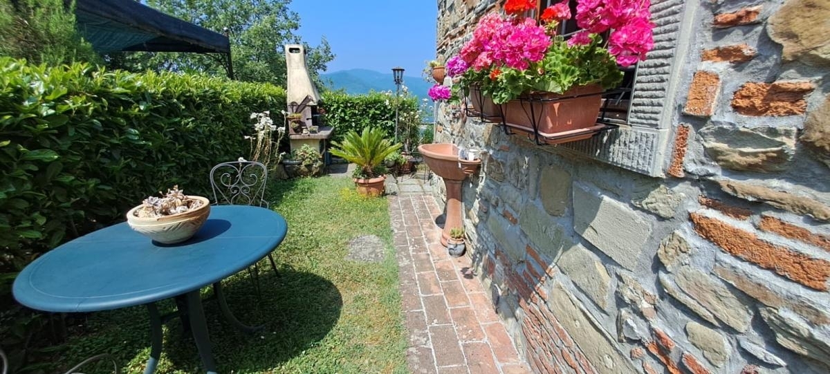 Dicomano frazione frascole vendiamo appartamento in un antico casale in pietra al piano terra con giardino, ristrutturato totalmente nel 2003 con impianti certificati e posto auto assegnato. L'immobile si compone di ingresso in soggiorno, cucina, camera martimoniale, bagno con doccia, ripostiglio/lavanderia e piacevole spazio esterno di circa 70mq. Termocamino che alimenta i radiatori. 250metri di strada bianca in ottime condizioni classe energetica: g - ipe: 189.36kwh/mq anno