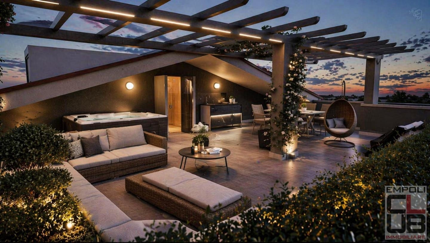 Rif.ag. G/0139 - capoluogo - empoli - rif. G/0139 - elegante attico, posto al terzo e quarto piano in palazzina di nuova costruzione edificata da noto imprenditore locale, autentica 'firma' dell'edilizia locale e regionale. Una residenza seducente, ornata di un'eleganza sobria e di un comfort straordinario che conta ben 200 mq lordi coperti fra abitazione e locali accessori, riscaldati e raffrescati con i nuovi sistemi a pannelli radianti e pompa di calore esterna, oltre mq 100 di terrazze solarium.. L'unità immobiliare, si trova a due passi dal centro storico, dalla stazione ferroviaria, dall'uscita della tangenziale empoli est, in una zona in cui i servizi primari, sono presenti ovunque. L'ingresso all'unità immobiliare avviene da un signorile vano scale e ascensore condominiali. Al piano terzo l'ingresso, la luminosa zona living, in cui l'atmosfera creata dal design d'interni, curato nei minimi dettagli, fa di quest'oggetto un pezzo unico ed intoccabile per chi desideri il piacere del lusso, della privacy e del benessere. L'ingresso è posto fra la sala da pranzo ed il soggiorno-cucina. Prospiciente la terrazza abitabile coperta a loggia. Il piano si completa con tre camere e doppio servizio igienico; al piano superiore (quarto),ampio vano sottotetto e la seconda splendida terrazza; circa mq 95 di spazio esterno, predisposto per l'installazione di piscina idromassaggio esterna. Due punti lavanderia collocati ai diversi piani, oltre punto acqua esterno per l'irrigazione delle fioriere. Al piano interrato in zona protetta da cancello carrabile, il garage pertinenziale di circa mq 20 con all'interno acqua, addolcitore ed autoclave privato per una pressione idrica costante e soddisfacente. Unità immobiliare unica, in cui ogni particolare è stato curato con la massima attenzione dallo scrupolosissimo. Pacchetto tecnologico mirato al massimo comfort e risparmio energetico, infatti l'immobile si contraddistingue per la sua classe a4, ma anche per l'agevole raggiungimento dei servizi di prima necessità, quali negozi, infrastrutture, trasporti pubblici. Classe energetica: a4 ipe 20.00 ulteriori informazioni solo in agenzia. Indirizzo indicativo - rendering inseriti a solo scopo pubblicitario. - sc9637957