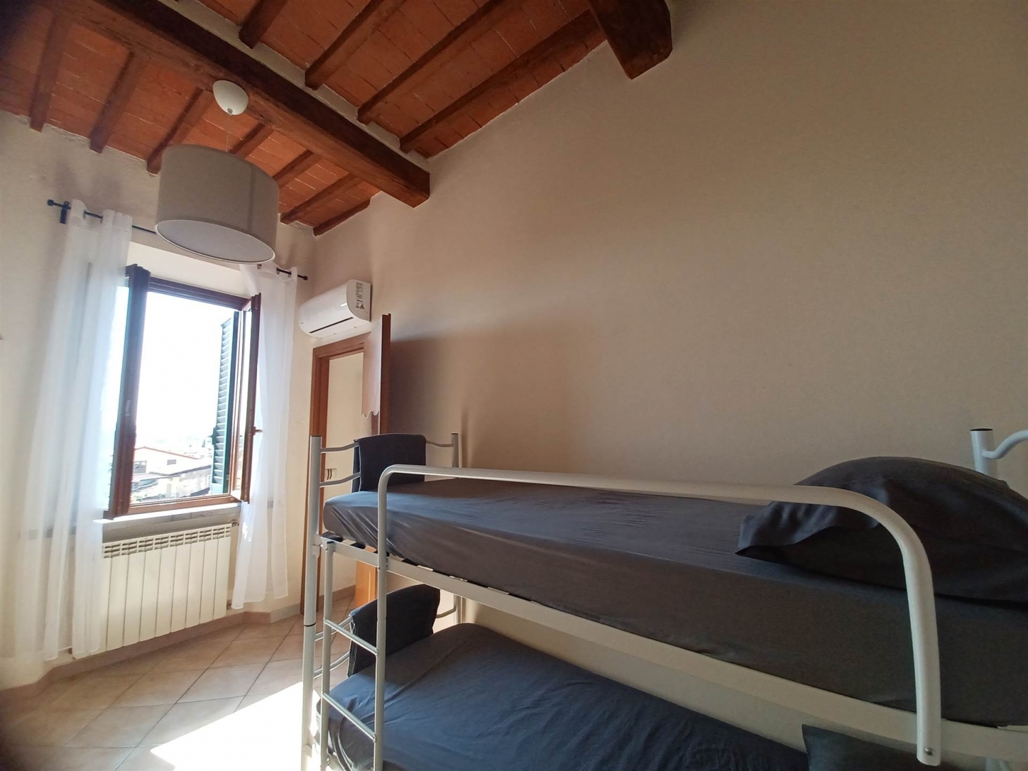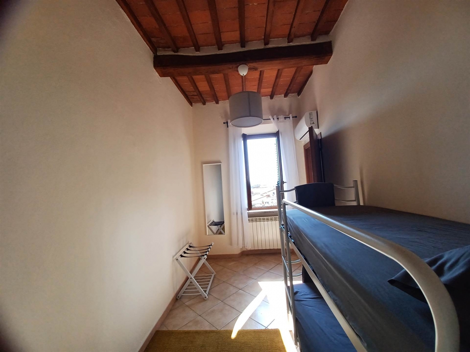 Appartamento al piano terzo ed ultimo a fucecchio in zona centrale, vicina a tutti i servizi. L'immobile si sviluppa su un unico livello ed e' composto da ingresso, soggiorno con angolo cottura, antibagno e bagno, ampio disimpegno finestrato da cui si accede anche al piccolo balcone, quindi camera matrimoniale e cameretta oltre ad un ripostiglio. Ogni stanza e' dotata di condizionatore istallato sia per il raffrescamento che per il riscaldamento. L'angolo cottura e' in muratura con piano cottura ad induzione. Infissi in legno, soffitti a trivi in stile rustico. L'appartamento al momento viene locato per affitti turistici. L'indirzzo e' indicativo della zona in cui si trova l'immobile classe energetica: g