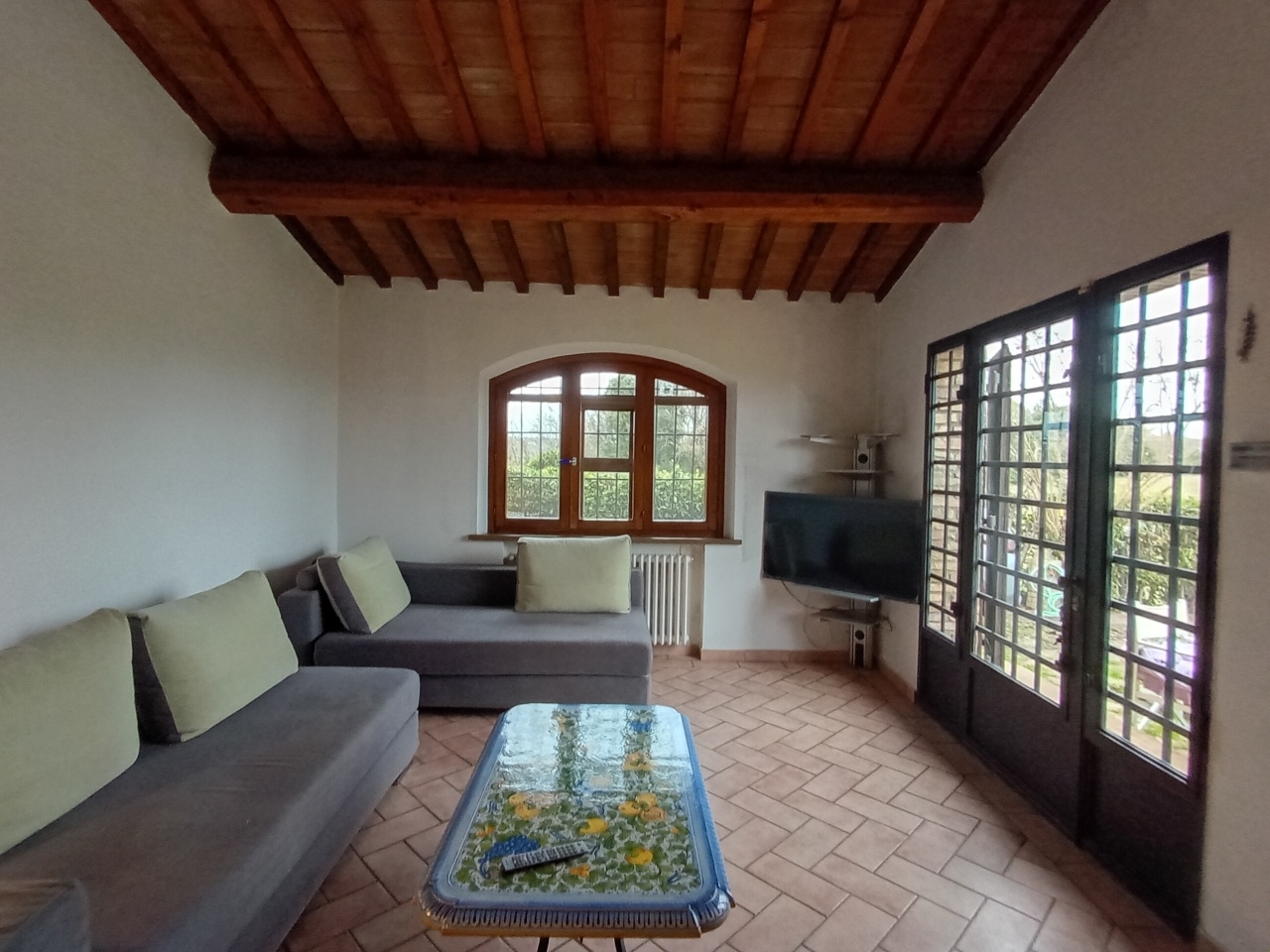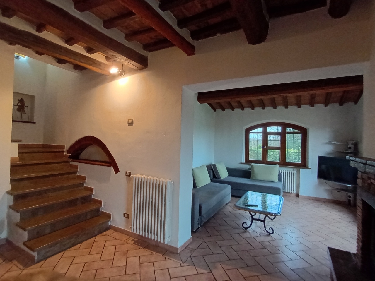 Porzione di casa colonica - terratetto indipendente, libero su tre lati e strutturato su 2 livelli, con ampio giardino di proprietà. L'immobile è stato ristrutturato finemente con materiali di ottimo livello, presenta facciate in pietra e soffitti con travi e mezzane in cotto, tipici delle case di campagna toscane. Piano terra con ingresso, ampio e luminoso soggiorno con bel camino, cucina-pranzo, 2 ripostigli, bagno di servizio; il primo ed ultimo piano dell'edificio è suddiviso in disimpegno, 2 camere da letto ed un bagno con doccia e finestra. L'abitazione dispone di utenze indipendenti, termo camino e stufa a pellet. Giardino di circa 185 mq con posto auto, accessibile da un cancello carrabile ed uno pedonale. Ubicato a 7 km da san gimignano ed a 20 km da volterra, in bella zona di campagna. Ideale come casa per le vacanze o per affitti turistici. En: portion of a farmhouse - independent terraced house, free on three sides and arranged over 2 levels, with a large private garden. The property has been finely renovated with excellent quality materials, featuring stone facades and ceilings with beams and terracotta mezzanines, typical of tuscan country houses. Ground floor with entrance, large and bright living room with a beautiful fireplace, kitchen-dining room, 2 storage rooms, service bathroom; the first and last floor of the building is divided into a hallway, 2 bedrooms, and a bathroom with shower and window. The house has independent utilities, a thermo-fireplace, and a pellet stove. Garden of approximately 185 sqm with parking space, accessible from a driveway gate and a pedestrian gate. Located 7 km from san gimignano and 20 km from volterra, in a beautiful countryside area. Ideal as a holiday home or for tourist rentals. - sc9594976