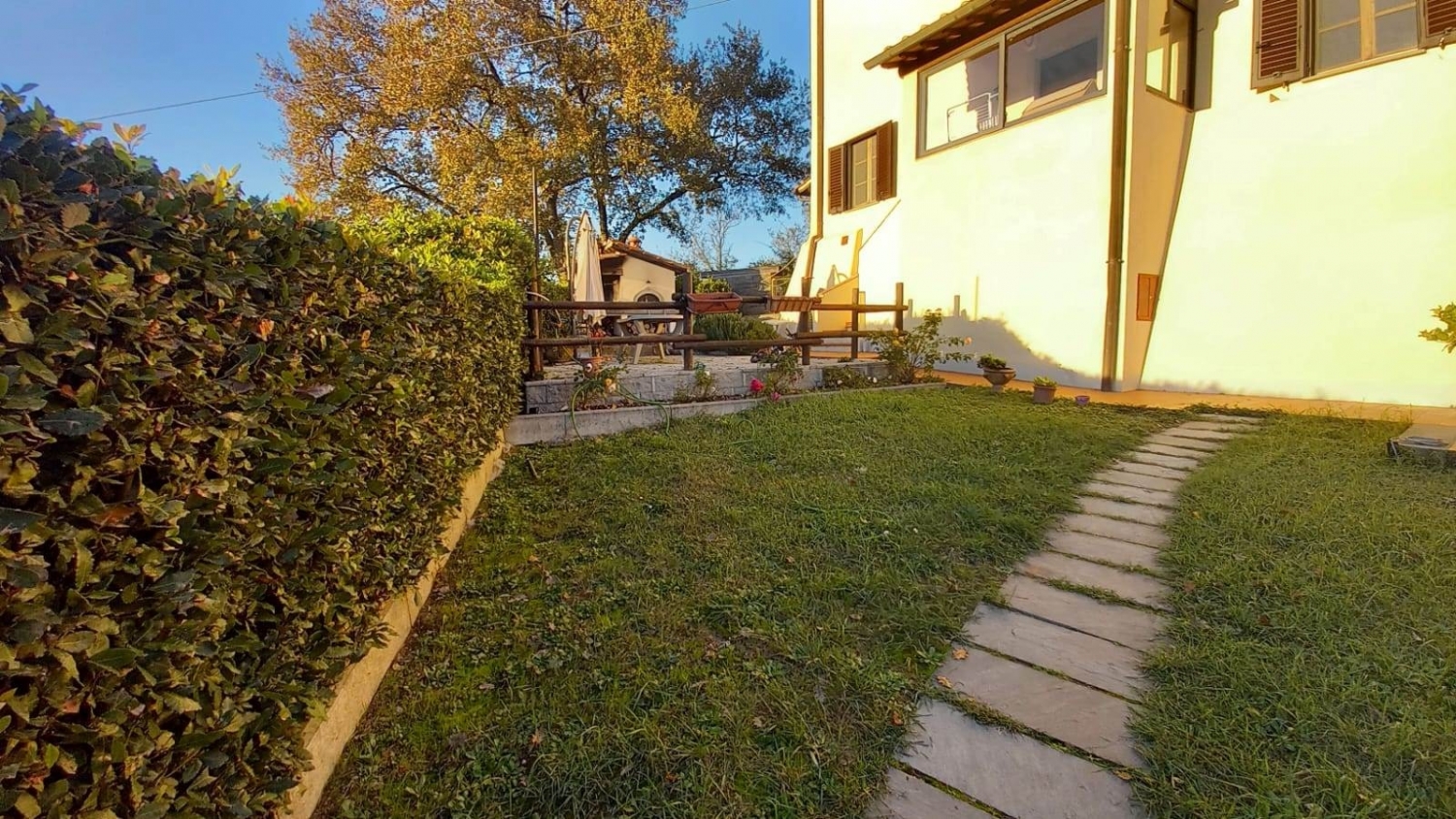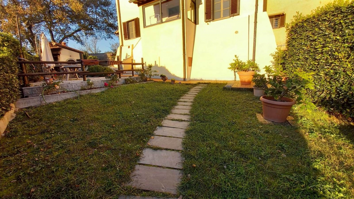 Rif: a/2665 reggello, in località leccio, in posizione rialzata soleggiata e panoramica a 3 km dalla stazione fs e poco lontano dall'outlet the mall, bel terratetto su più livelli, completamente ristrutturato pochi anni fa e con circa 1000 mq di spazio esterno esclusivo fra parcheggio auto, orto e giardino con barbecue e forno pizza , casetta per attrezzi. L'immobile è posto su due livelli, angolo cottura e soggiorno con caminetto e piccolo servizio al primo piano, due camere matrimoniali e bagno al piano secondo. La proprietà si completa con due locali posti nel sottotetto adibiti a stanza giochi e sbratto. Riscaldamento a legna, pellet, e gpl; l'immobile inoltre è dotato di impianto di allarme e domotica di base.. Ottime rifiniture. Da vedere. Libero a contratto classe energetica: g