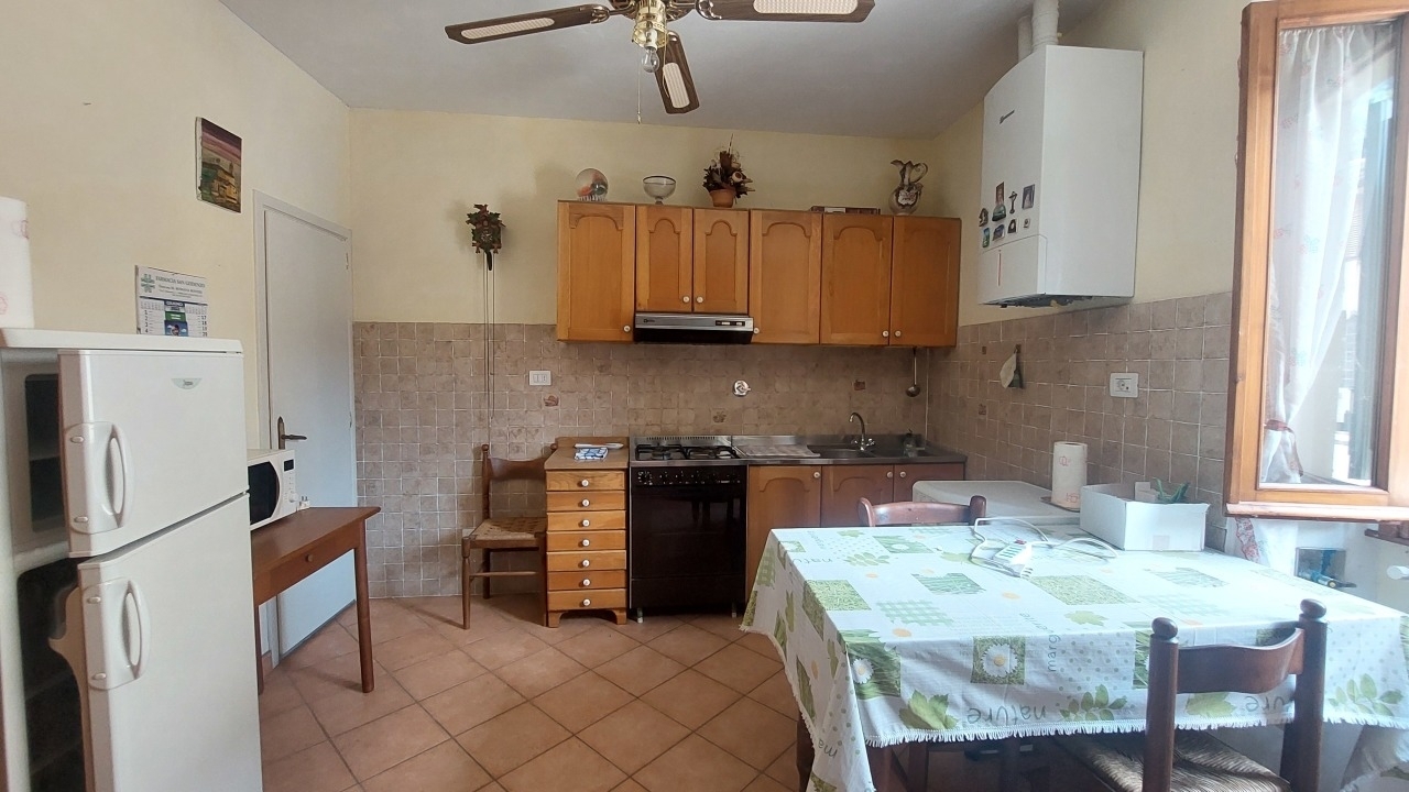 San godenzo paese, centro storico, proponiamo in vendita un appartamento al piano terra rialzato con ingresso semindipendente. l'abitazione, di circa 78 mq, è suddivisa in zona giorno e zona notte; nella zona giorno troviamo salotto aperto sulla cucina abitabile, nella zona notte invece due camere matrimoniali oltre che il bagno e l'accesso ad una soffitta (altezza massima 2.5 m).completa la proprietà esclusiva un ampio garage. Termosingolo a metano con ipe in elaborazione. per ulteriori informazioni o per effettuare un sopralluogo non esitate a contattarci! rif.2075 €95.000,00