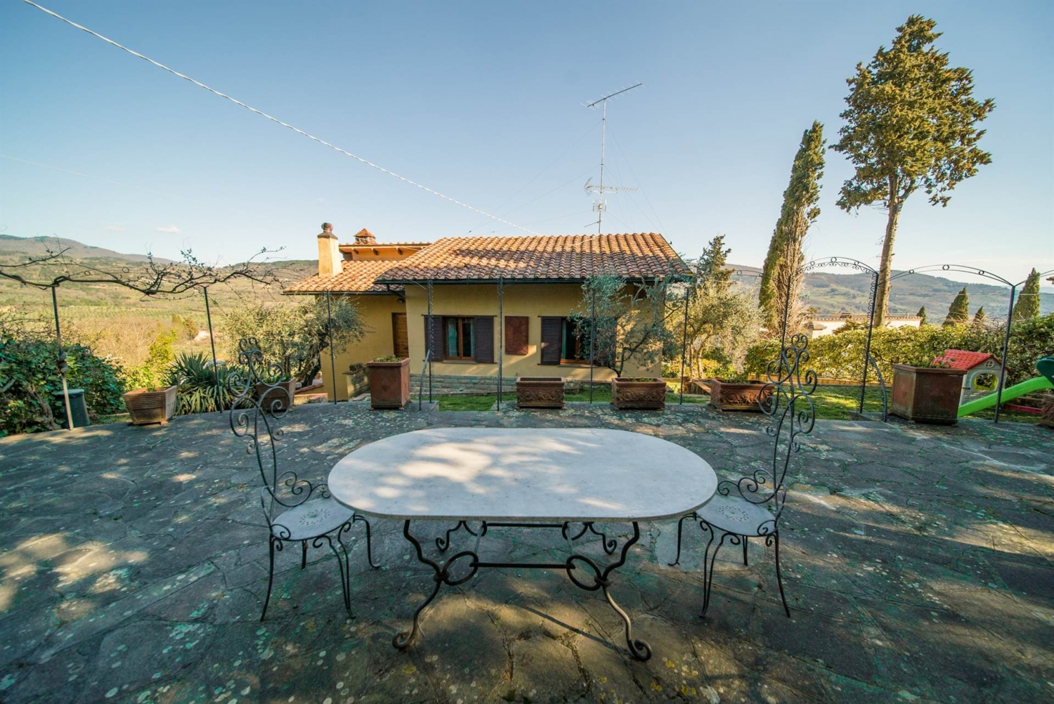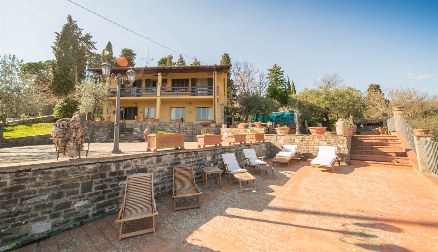 Nostra esclusiva. Vaglia località san iacopo, villa unifamiliare in posizione panoramica, della superficie di circa 270 mq disposta su due livelli. Al piano terreno rialzato ingresso da loggia in vano di disimpegno, luminoso soggiorno doppio con sala da pranzo, pratica cucina con accesso al giardino, vano dispensa accatastato come cantina, studio o altra camera da letto e bagno. al primo piano quattro camere da letto, terrazza, soggiorno triplo e altro bagno. Completano la proprietà un ampio giardino di circa 1000 mq con area relax, forno coperto e ampio locale di circa 60 mq. termosingolo a metano, aria condizionata in una camera e in soggiorno. La costruzione risale agli anni 70' mal'immobile è in buone condizioni generali, il tetto è stato rifatto con coibentazone 25 anni fa, l'impianto di riscaldamento è stato rifatto circa 10 anni fa, la caldaia sostituita 5 anni fa e sono stati istallati pannelli solari per l'acqua calda. Immobile di grande fascino. classe energetica: g