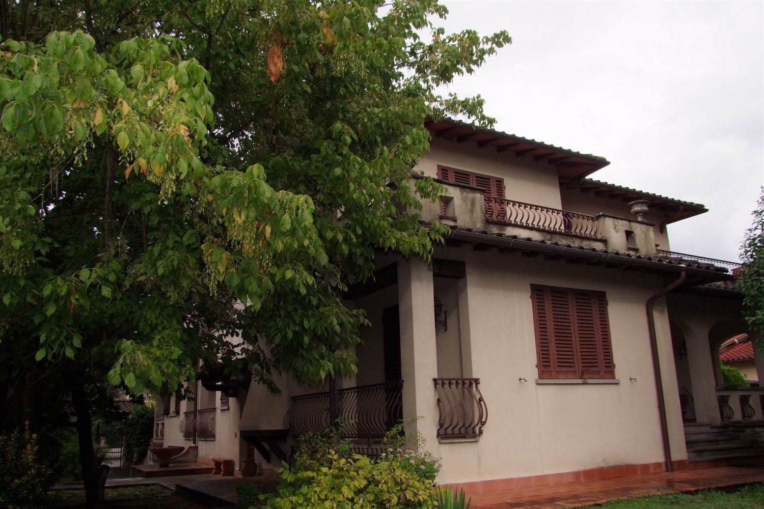 Porzione di villa libera su tre lati, su tre livelli di mq 240 con giardino di 300 mq su due lati.l'immobile è composto nel seminterrato da doppio garage, cantina e una taverna con cucina e camino ed un ripostiglio. Al pian terreno ampio soggiorno con camino e terrazza, angolo cottura con sala da pranzo direttamente su grande loggia esterna, un ripostiglio e una camera matrimoniale con terrazzo, infine un bagno finestrato con doccia. Al primo piano si trovano due camere matrimoniali che si affacciano su un grande terrazzo e un'altra camera matrimoniale con guardaroba, una cameretta con terrazzo. Due bagni finestrati uno con vasca ed uno con doccia. Completa la proprietà centrale termica di mq 14. Classe energetica: g epi: 250 kwh/m2 anno