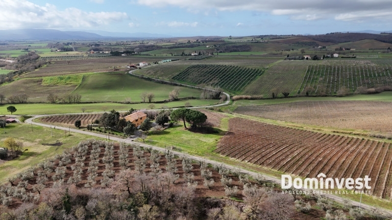 L'agenzia immobiliare dominvest roma capalbio propone in vendita un'azienda agricola posta su un poggio con vista dominante, nel comune di magliano in toscana nelle vicinanze della marsiliana.l'azienda è composta da un casale ex ente maremma posto nella sommità del poggio, un ampio magazzino (ex porcilaia allargata) in pietra a vista, il forno e 26 ettari di terreno.il casale è stato implementato negli anni 80, al primo piano è presente un'abitazione di circa 137 mq, composta di scala interna, ingresso, salone con camino, camera da pranzo, cucina, tre camere, due bagni e terrazzo con vista panoramica dotato di riscaldamento a pellet ed aria condizionata; al piano terra sono presenti vari magazzini e la vecchia stalla. Possibilità di effettuare il cambio d'uso al piano terra e renderlo abitativo.i terreni sono piantumati a vigna per 4.6 ettari, dei quali 1.3 sangiovese docg e 3.3 vermentino, circa 16 ettari a seminativo , circa 2 ettari a uliveto con 12 piante ed il restante a bosco.sono presenti due pozzi irrigui.il casale è servito da una strada privata di accesso che connette la proprietà alla strada provinciale aquilaia. la zona è strategica poiché a pochi minuti dal centro di magliano in toscana, in soli 20 minuti è raggiungibile il mare, in 30 minuti le terme di saturnia ed in 20 minuti capalbio.*le presenti informazioni e planimetrie sono meramente indicative e non costituiscono elementi contrattuali.