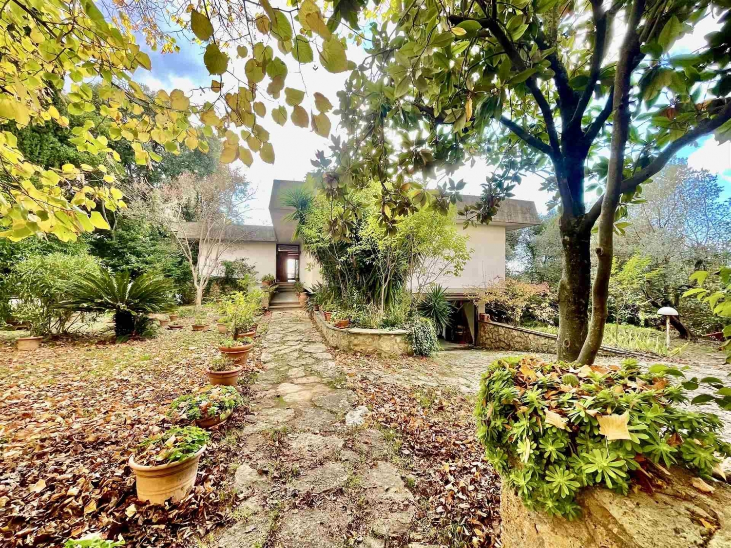 Bellissima villa signorile edificata alla fine degli anni '60, caratterizzata da ambienti ampi e fuori dagli schemi progettuali tradizionali. Immersa in un parco di vegetazione mediterranea, la proprietà si sviluppa su due livelli che, grazie alla conformazione del terreno, risultano entrambi veri e propri piani terra.fin dal primo ingresso si percepisce lo stile unico della casa: le linee architettoniche e le soluzioni progettuali adottate come i tre suggestivi coni di luce che illuminano l'ampio ingresso conferiscono carattere ed unicità all'immobile. Da qui, dopo lo studio con parete in vetro, si apre la zona giorno, composta da una grande sala sulla destra e da una luminosa zona pranzo sulla sinistra, entrambe valorizzate da ampie vetrate che incorniciano la vista sulla piana massetana. La zona divani è resa ancora più accogliente da un elegante camino di design.dalla sala e dalla porta di servizio si accede alla cucina semi abitabile con uscita diretta sul giardino. Un piccolo corridoio conduce a una cameretta con bagno di servizio e al vano scala che porta al livello sottostante. La zona notte si sviluppa invece sul lato opposto dell'ingresso: tramite corridoio si accede a tre camere matrimoniali, due bagni e una stanza sgombero.il piano inferiore, completamente fuori terra, offre ulteriori spazi fruibili: una cucina, un salotto con camino, due camere, due bagni e un ripostiglio, perfetti come area ospiti o come unità indipendente.lo stato attuale dell'immobile è pienamente abitabile, ma alcune migliorie e aggiornamenti potrebbero valorizzarlo ulteriormente, riportandolo allo splendore che merita.completano la proprietà un ampio garage e un locale cantina, entrambi collegati internamente alla casa. Possibilità di ampliare la proprietà con un progetto. Classe energetica: g