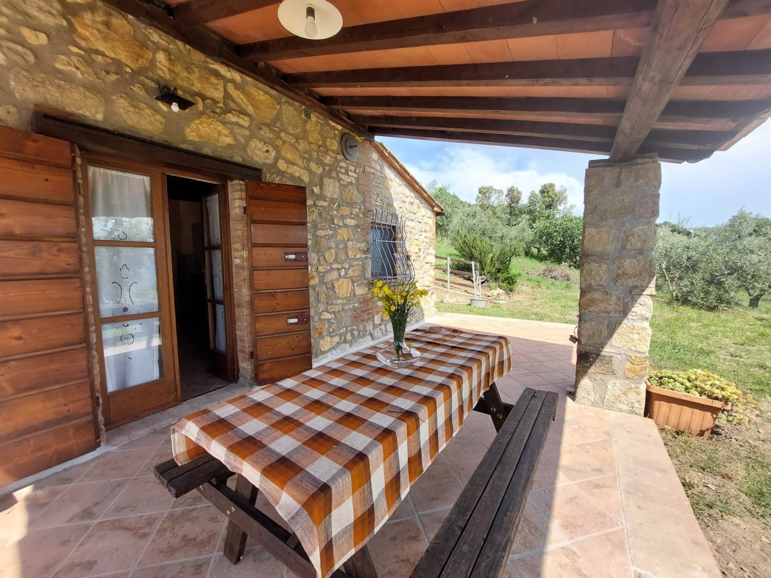 Completamente in pietra dal fascino toscano presentiamo un annesso agricolo di 47 più portico con possibilità di ampliamento tramite cambio di destinazione d'uso. dal cancello privato si accede alla proprietà di circa 2ha , con oliveto ben tenuto ed in produzione .la piccola dimora ci accoglie nel porticato .a travi x godere di una vista rilassante la casa si sviluppa su due livelli al piano terra cucinotto , sala con particolari di faccia vista e bagno .tramite una bella scala in legno e ferro si sale al piano superiore dove troviamo la camera spaziosa con un balcone molto intimo. Bella costruzione con rifiniture tipiche delle case antiche toscane..riscaldamento con pompa di calore e predisposizione presenti i termosifoni per l'allaccio al metano .la proprietà può essere ampliata cambiando destinazione d uso zona barbecue molto piacevole con bella vista classe energetica: g