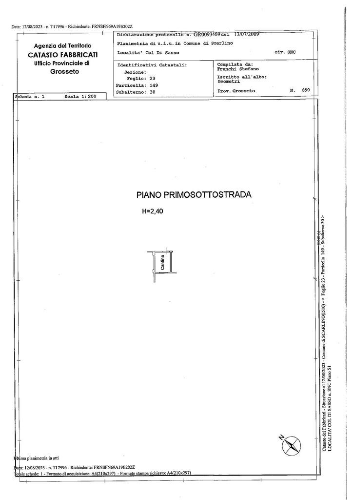 Tribunale di grosseto - 23 gennaio 2026 - vendita giudiziaria sincrona mista - cantina al piano primo sotto-strada, situata nel comune di scarlino (gr), località col di sasso, all'interno del 'complesso c.a.v. Borgo etrusco', di cui alla 'premessa', da considerarsi qui riportata, individuata con il numero di interno 1f. La cantina è rifinita con pavimento in battuto di cemento e pareti in blocchi faccia vista ed è completa di impianto elettrico. Per ulteriori informazioni, contattare dott. Alessandro caselli la procedura dispone di altri lotti simili ma con tipologia, metrature e costi differenti. Sul sito itasset.it si possono trovare tutti i lotti in vendita con i relativi documenti. - sc9073463