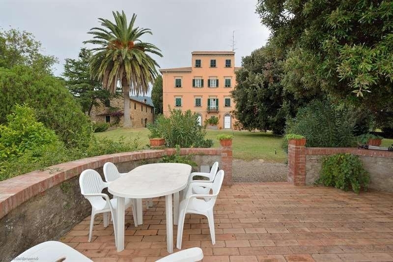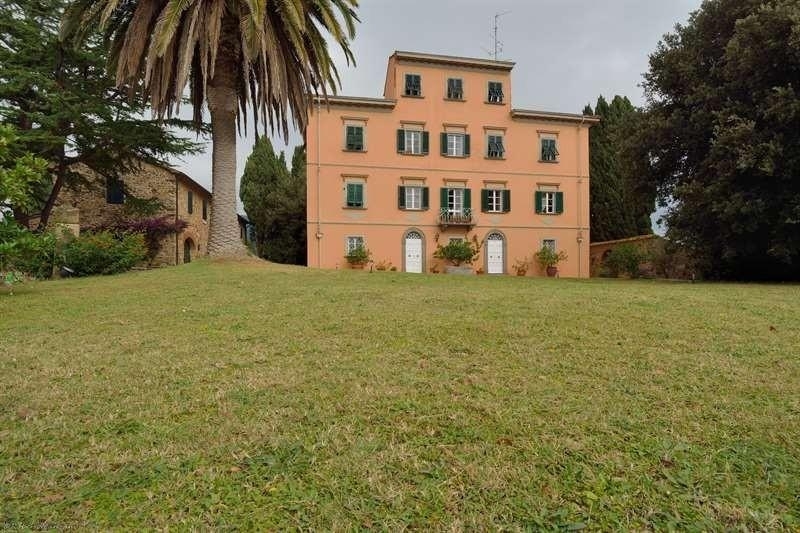 Rif: villa monte pitti è una classica struttura ottocentesca toscana, costruita nella prima metà del 1800 nella sua forma estetica attuale e ristrutturata interamente negli anni '70. la villa è collocata sulla sommità di una collina estesa quasi 10 ettari (terreno che fa parte della proprietà) a 75 metri sul livello del mare. e' dotata di ampio garage e vari locali di servizio, tra cui una bella stanza rotonda, con annesso bagno, dislocata al di sotto di una terrazza panoramica che si affaccia sulla valle del fiume cornia e dalla quale si gode una bellissima vista panoramica con ampia prospettiva fino al mare e le coste di piombino, follonica, punta ala ed isole prospicienti. la superficie della villa è di circa 500 mq. Ed è circondata da un ampio giardino ricco di piante secolari.vicino alla villa è collocata una struttura rurale, anch'essa interamente ristrutturata, in stile rustico con pietre a faccia a vista; è abitata dal custode. la casa rurale ed i vari locali di servizio (garage, cantine, lavanderia ecc.) hanno una superficie complessiva di altri 500 mq. Circa. il terreno agricolo, interamente recintato e classificato 'fondo chiuso' è coltivato per la maggior parte ad oliveto, una piccola parte ad orto, una parte completamente ombreggiata da pioppi ed al cui interno c'è una sorgente naturale, la cui acqua viene raccolta in una apposita vasca ed usata per l'irrigazione del giardino della villa. nello stesso bosco di pioppi, ai piedi della collina, sorge un annesso agricolo adibito a garage per il trattore e per le varie attrezzature agricole. la villa gode di una invidiabile panorama: ad est verso il mare e le isole dell'arcipelago toscano, ad ovest verso il centro storico medioevale di campiglia marittima, a nord ed a sud verso la tipica campagna toscana. la spiaggia più vicina dista circa 10 km.; stessa distanza per la stazione ferroviaria; pisa ed il suo aeroporto sono a circa 40 minuti di auto. il porto di piombino a 15/20 minuti di auto e l'isola d'elba è raggiungibile in 35/40 minuti con l'aliscafo. firenze e siena sono raggiungibili in auto in poco più di un'ora. villa monte pittistato attualepiano terra, primo piano, secondo piano di mq. 150 cadauno torretta (terzo piano) di mq. 50n° 3 grandi sale (una per piano) n° 6 camere da letton° 5 bagni n° 3 cucine oltre a servizi ed accessori ad ogni piano annessi (nell'abitazione rurale)garage per 4 autovetture cantina lavanderiaripostigli annessi (nel fabbricato sull'altro lato villa)costruzione composta da due locali di servizio ed un forno per il pane terrazza panoramican° 1 sala rotonda sotto la terrazza mq. 50 n° 1 bagno abitazione ruraleal primo piano: n° 3 camere n° 1 salotto n° 1 bagno al piano terra: n° 1 cucina n° 1 sala da pranzo n° 1 garage per un'auton° 1 locale di servizio la villa è dotata di impianto di irrigazione semi automatico con propria sorgente e vasca di raccolta. nuovo impianto di riscaldamento centralizzato con centrale termica distaccata e pannelli solari per la fornitura di acqua calda.