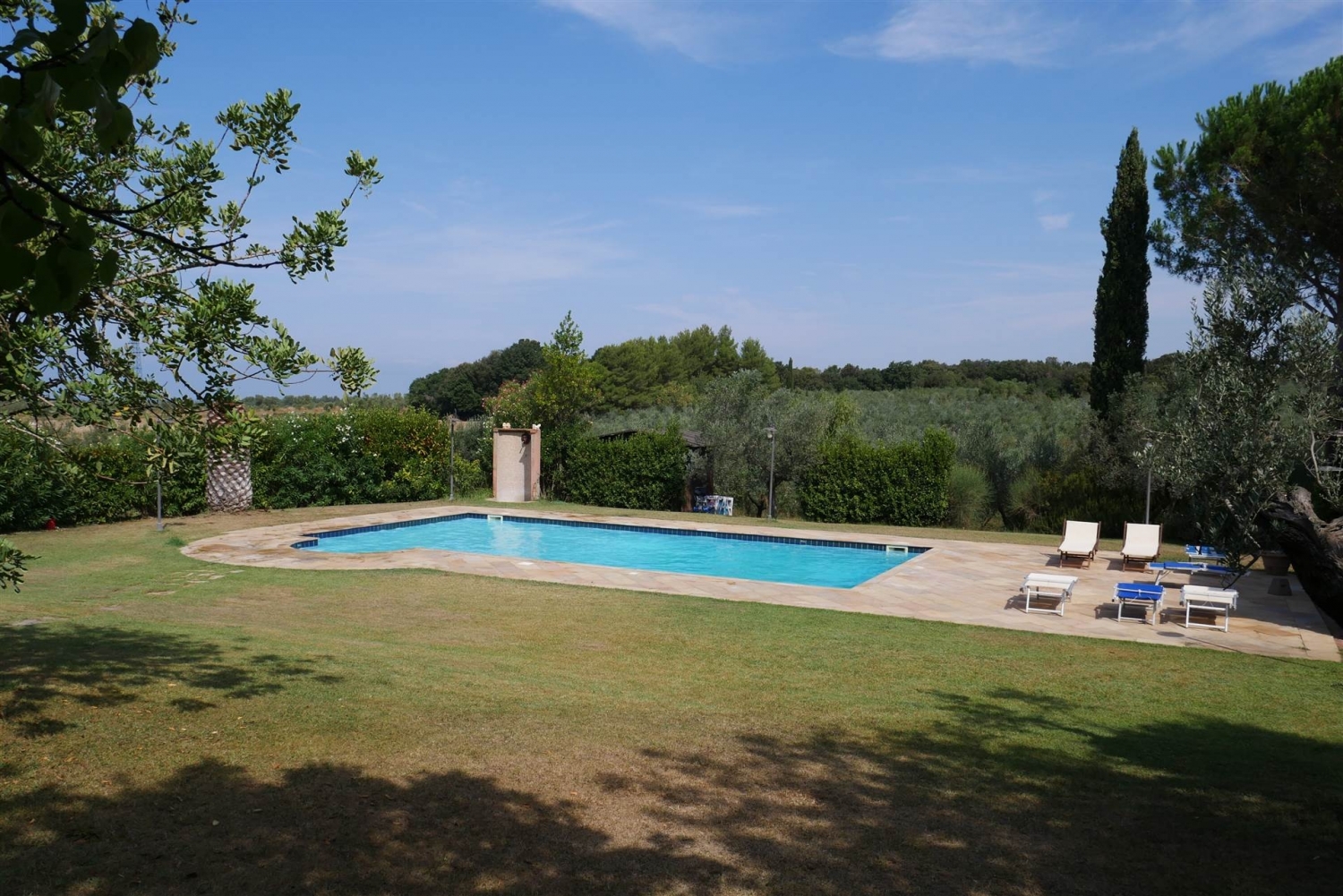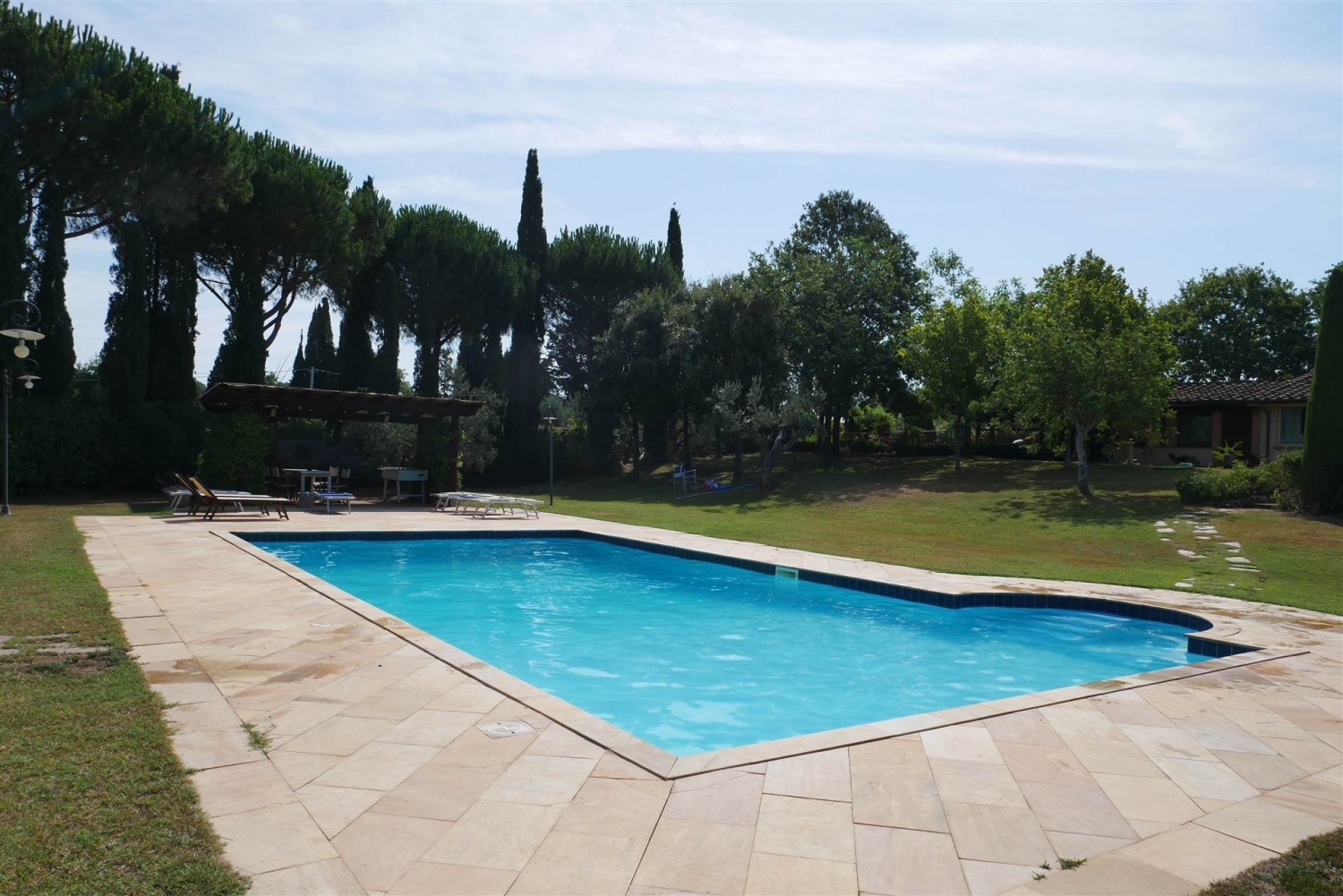 Toscana casa agenzia immobiliare vende a cecina una villa vista mare con piscina campo da calcio e ampio parco privato di 16.000 mq tutto recintato la posizione è ottimale in quanto dista pochi km (7) da cecina ed è possibile raggiungere il mare in pochi minuti. La villa è stata costruita nel 2003 utilizzando materiali di pregio, si sviluppa su due livelli per complessivi 280mq, oltre a pergolato e annesso. Cucina abitabile, il piano terra è composto da un ampio soggiorno, , tre camere da letto di cui una con bagno in camera, e ulteriore bagno. Il piano seminterrato collegato al piano terra da scala interna è composto da cucina abitabile dove troviamo un camino e un forno a legna, due camere, un bagno , la zona lavanderia e l'autorimessa. La villa è dotata di impianto fotovoltaico da 10 kw. L'indirizzo fornito è indicativo per tutelare la privacy dei proprietari. Per informazioni agenzia toscana casa piazza carducci 24 cecinaalessandro pezzotta classe energetica: g