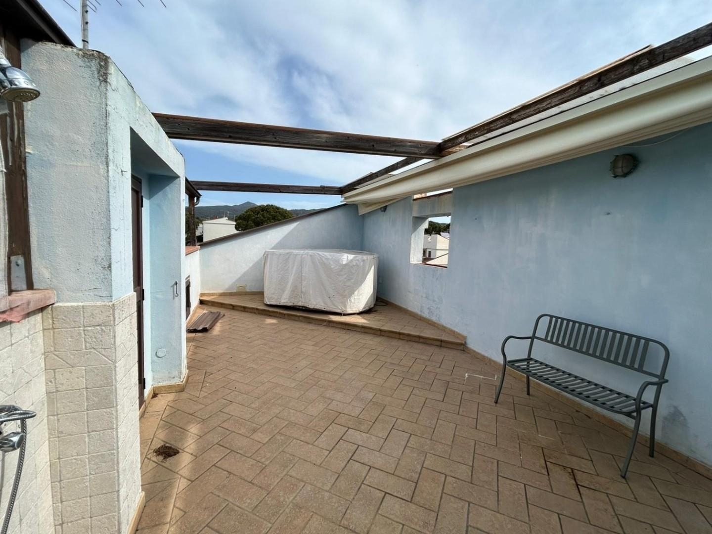 Rif: castiglioncello - appartamento che permette di raggiungere agevolmente il mare a piedi zona caletta-pungenti. Situato in zona molto tranquilla e verdeggiante. L' appartamento si trova al primo ed ultimo piano di un edificio a schiera con ingresso indipendente dalla resede esclusiva. A soli 5 minuti a piedi dal mare, offre un ambiente sereno e silenzioso. L'ingresso dell'abitazione è raggiungibile tramite una scala esterna che conduce a un balcone verandato. Entrando, ci accoglie una luminosa zona giorno con un terrazza pranzabile e un cucinotto finestrato. La zona notte è composta da un disimpegno, una camera matrimoniale, una seconda camera, e un bagno recentemente ristrutturato con doccia. Al piano superiore, accessibile tramite scala interna, si trova una grande terrazza attrezzata con piccola piscina, la doccia ed una comodissima tenda automatica: l'ideale per godere delle belle giornate estive in totale privacy. L'appartamento è stato oggetto di recenti interventi tra cui il rifacimento dell'impianto elettrico, dell'impianto di riscaldamento e del bagno. è inoltre predisposto per l'installazione dell'impianto di climatizzazione. Completa la proprietà un comodo monolocale , di dimensioni generose con angolo cottura e bagno. La parte riguardante le facciate è invece da rivedere. Caratteristiche aggiuntive: riscaldamento autonomo a metano. Nessuna spesa condominiale. Discrete condizioni generali.