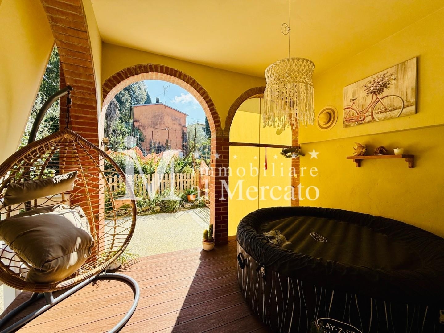 Rif: golia - colline di camaiore località pieve 'golia' porzione di rustico con giardino nostra esclusiva proponiamo in vendita questa bella abitazione immersa nel verde e nella tranquillità. esternamente dispone di area, a comune con l'unità adiacente, dove si possono parcheggiare le auto, oltre a giardino di proprietà di 250 mq con accesso carrabile e veranda uso lavanderiasi accede al piano terra rialzato tramite una piacevole veranda ed entriamo nell'ampia cucina con balcone direttamente collegata alla zona soggiorno e alla fantastica terrazza panoramica verandataattraverso il soggiorno raggiungiamo la prima camera ed il bagno/doccia finestrato.al piano terra seminterrato troviamo un ampio disimpegno, un ripostiglio/armadi, una bagno doccia finestrato ed un' ampia camera.la conformazione ed ubicazione di 'golia' fa sù che la casa sia fresca, tranquilla e al contempo a pochi minuti da tutti i servizi ed a due km da camaiore.la casa è fornita di tutti i comfort riscaldamento a metano, stufa a pellet, sistema di allarme, bei pavimenti in cotto e parquetottima soluzione per te che vuoi vivere in collina pur non rinunciando ai serviziper te che ami sia la collina che il mare e vuoi una soluzione indipendente ad un prezzo da appartamentoper te che ami lo stile rusticoper questo annuncio chiama raffaella