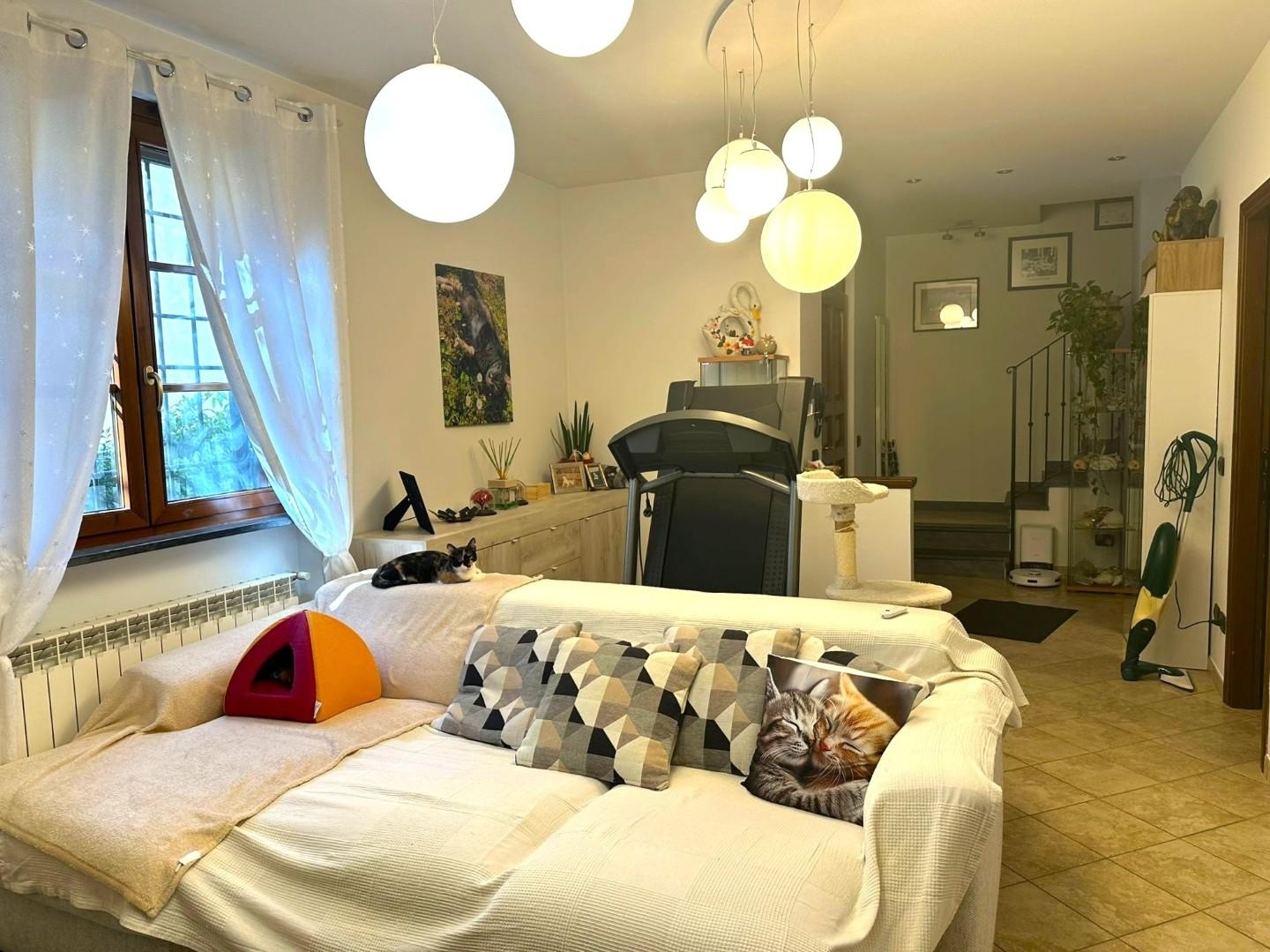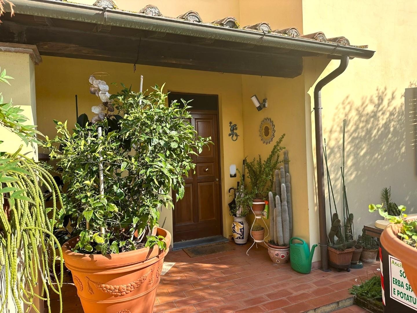 Rif: vs capa 325 - capannori, a 500 mt dal centro, in zona interna tranquilla, proponiamo in vendita villetta a schiera centrale di 130 mq elevata su due livelli, in ottime condizioni (costruzione 2006), composta al piano terra da: ingresso/ampio soggiorno, cucina abitabile, bagno finestrato con doccia e locale lavanderia/ripostiglio; al primo piano disimpegno, un'ampia camera matrimoniale con armadio a muro, due camere singole e ampio bagno finestrato con vasca idromassaggio e doccia, oltre a soffitta ad uso ripostiglio con scala retrattile. A corredo dell'abitazione giardino di 20 mq sul davanti, giardino (attualmente lastricato) di 25 mq sul retro e due posti auto all'interno della resede con cancello automatico. Ottime rifiniture: pavimento in gres porcellanato e parquet, infissi in legno con doppi vetri, zanzariere e persiane blindate in alluminio ed inferriate al piano terra. Dotata di aria condizionata, addolcitore, videocitofono e videosorveglianza.
