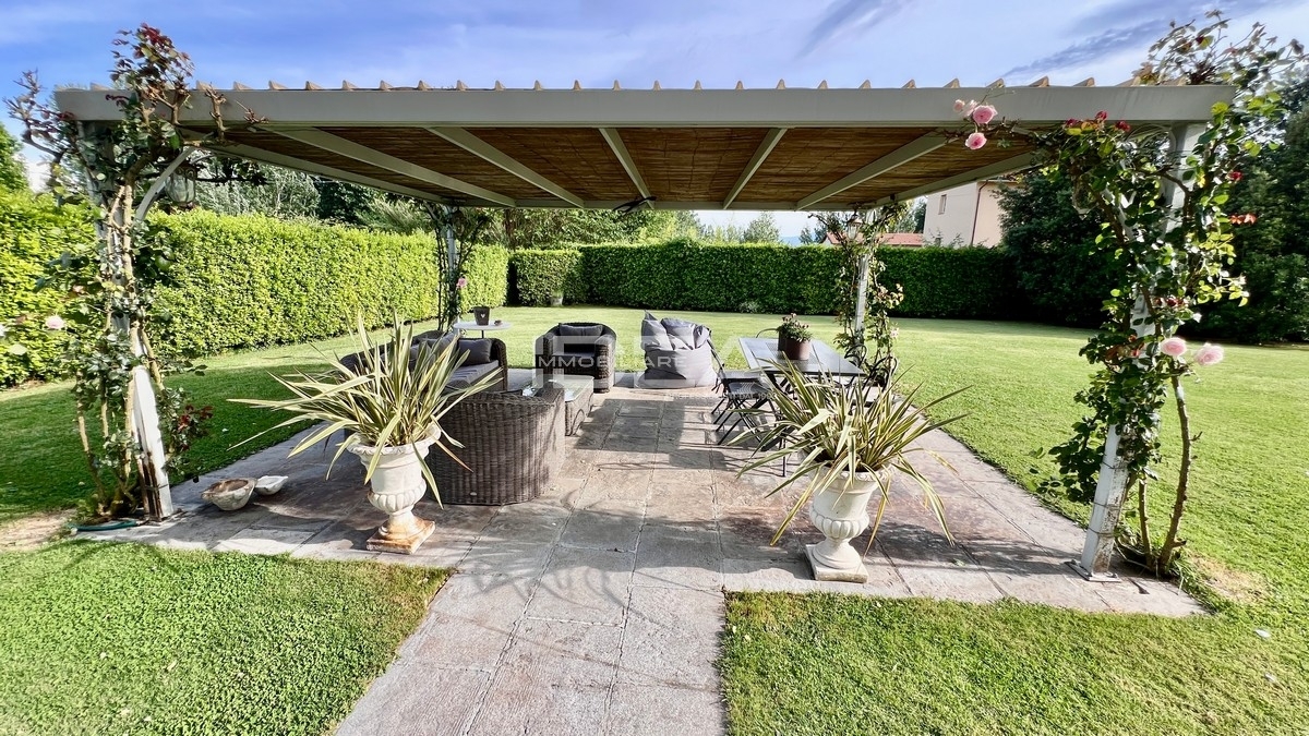 In zona semicollinare e residenziale villa stile liberty di mq 320 di recente costruzione realizzata con matriali di pregio, corredata da piacevole giardino di mq 1600 con doppio accesso carrabile, dove troviamo grande gazebo adiacnte la cucina e posti auto coperti.nel giardino à possibile realizzare piscina e dependance.al piano terra si compone da ampio ingresso, soggiorno con camino, sala da pranzo, cucina abitabile con accesso al giardino, locale dispensa, ripostiglio/lavanderia, bagno, ampio disimpegno con armadi + vano caldaia; al piano primo troviamo ampio disimpegno notte, camera padronale con stanza armadi e bagno con doccia, bagno con grande doccia e balcone, 2 camere matrimoniali; al piano secondo (sottotetto) ampio disimpegno, grande vano pluriuso oggi adibito a grande soggiorno - pranzo oltre a 2 vani ad uso ripostiglio.impianto di riscaldamento a metano a norma, impianto elettrico a norma, pavimenti in cementine del tessieri, porte in legno laccate, infissi in legno laccati, vetrocamera, persiane in legno, zanzariere, porta blindata, cancello elettrico, impianto di allarme.per motivi di privacy la zona non e' quella reale ma indica solo un riferimento approssimativo della sua ubicazione. Classe energetica: c - ipe: 63.85kwh/mq anno