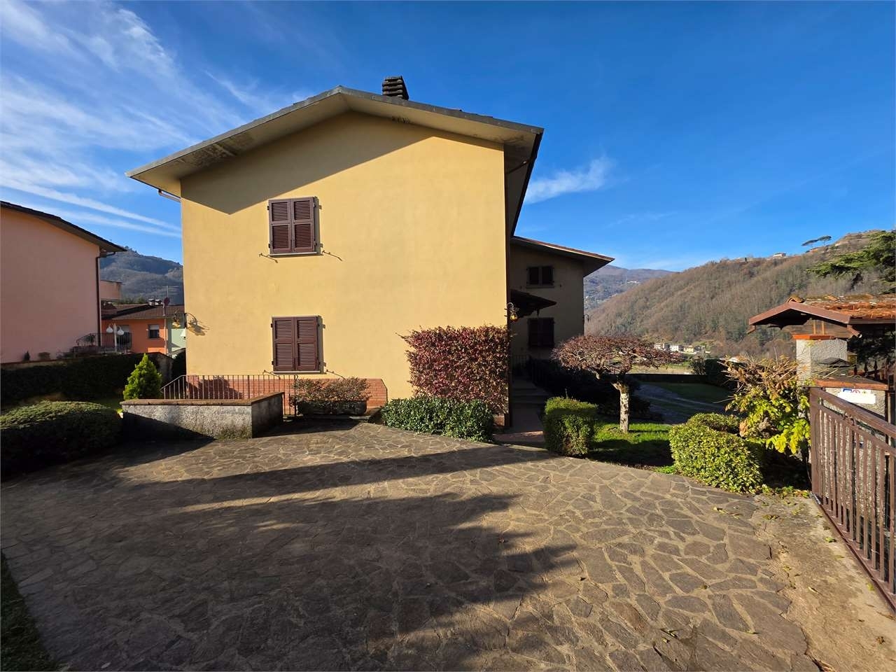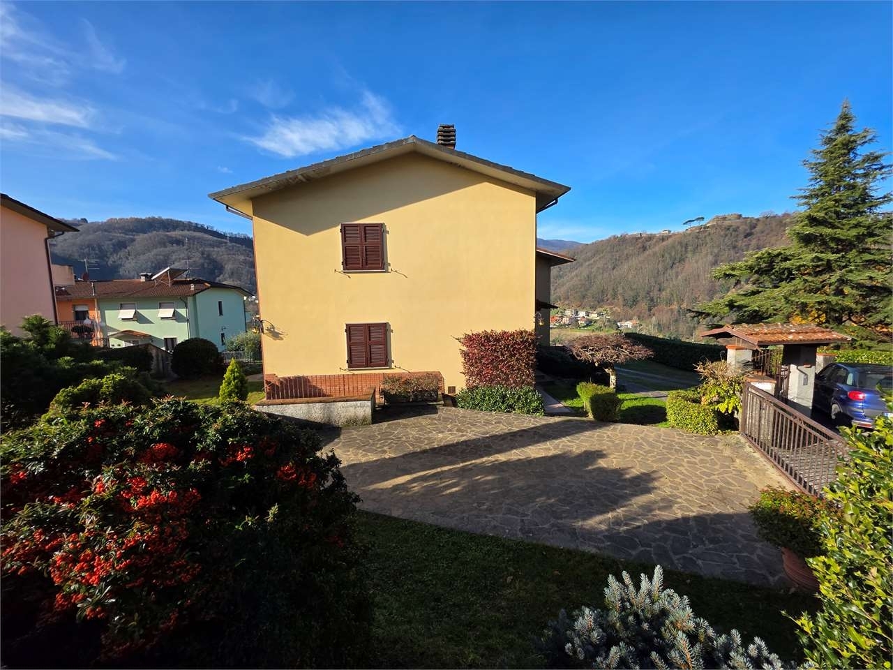 Questa graziosa casa bifamiliare è collocata nella rinomata area residenziale di castelnuovo garfagnana, gode di una bella esposizione al sole con vista panoramica ed è a due passi dal centro paese.la proprietà si sviluppa su due piani più il seminterrato e comprende al piano terra una taverna e un locale lavanderia (si può acquistare un locale in più da usare come camera o studio). Una scala conduce al primo piano dove si trovano un grande soggiorno con caminetto e una cucina abitabile dalla quale si accede a una terrazza dove si possono organizzare pasti all'aperto; un disimpegno conduce alla zona notte che include deu camere spaziose, un bagno e un vano utilizzato come studio (si può trasformare in una terza camera). Scendendo la scala interna ci sono due locali usati come cantine e un locale tecnico accessibile anche dall'esterno. La villetta è rifinita molto bene con finestre con doppio vetro e un bel parquet nella zona notte. Le condizioni di manutenzione sono eccellenti e si può abitare subito. La superficie complessiva è di circa mq 250. il riscaldamento con radiatori è alimentato da una caldaia a pellet. Il giardino misura circa 250 metri quadrati. Possibilità di utilizzo anche in due unità abitative indipendenti. classe energetica: e