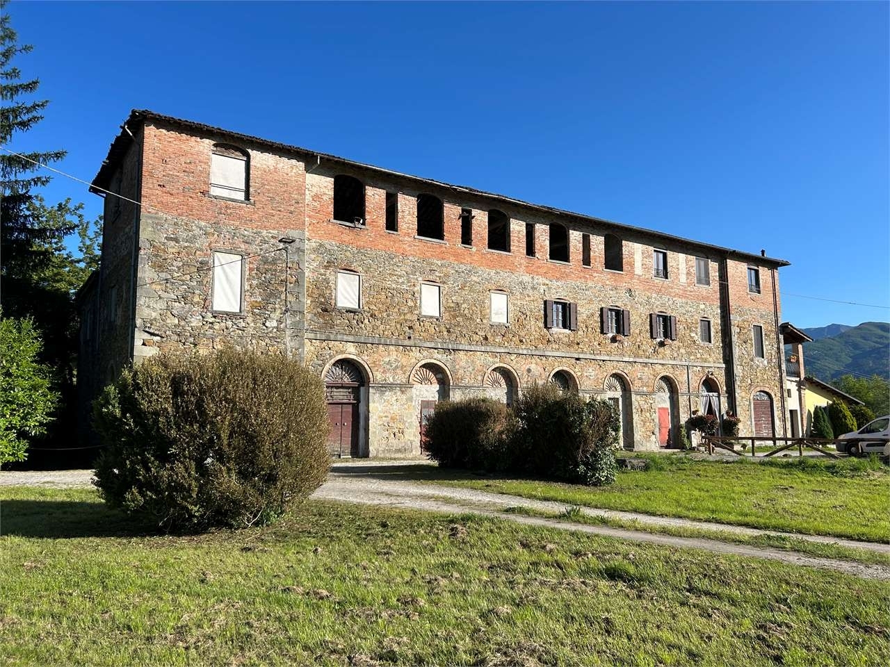 Complesso immobiliare posto nel centro delle colline rigogliose della garfagnana ad appena due chilometri da ogni comodità.il luogo è soleggiato e presenta una magnifica vista panoramica sulle montagne e sulla valle sottostante.la tenuta si sviluppa attorno alla struttura principale composta da un antico edificio storico in pietra costruito per creare oggetti in terracotta e poi trasformato in una filanda per lavorare il baco da seta. Gli attuali proprietari nel corso degli anni 2.000 hanno completamente rimesso a nuovo con attenzione al rispetto degli elementi costruttivi ed architettonici originali, una sezione dell'edificio creando una struttura agrituristica formata da 3 alloggi autonomi con spazio verde esclusivo e un ampio salone condiviso che era usato per convivialità ed eventi. Questi immobili si trovano in condizioni perfette e sono subito disponibili all'uso.la porzione restante dell'edificio può essere rinnovata con finalità abitative.la proprietà include due grandi rimesse una delle quali da rinnovare che servivano le attività agricole, ricoveri per animali, magazzino attrezzi, eccetera che si estendevano sul terreno circostante di circa 1,5 ettari formato da prati pianeggianti. Esiste l'opzione di comprare un altro ettaro di terra.inclusa nell'acquisto vi è una piccola chiesa ancora consacrata situata a pochi metri dalla costruzione principale.è fattibile costruire una piscina.le dimensioni totali della costruzione sono le seguenti:vecchia filanda da sistemare circa 630 metri quadrati. Alloggi e sala in comune sistemati: circa 330 metri quadrati. Le due rimesse circa 750 metri quadrati. Chiesetta circa 25 metri quadrati.è importante evidenziare la notevole capacità di questo complesso che offre l'opportunità di iniziare a guadagnare subito con la sezione ristrutturata e permette in futuro la sistemazione del grande blocco centrale. Inoltre l'attività agricola potrà poi essere aggiunta e valorizzata con l'allevamento e/o l'allestimento di un maneggio.classe energetica: g