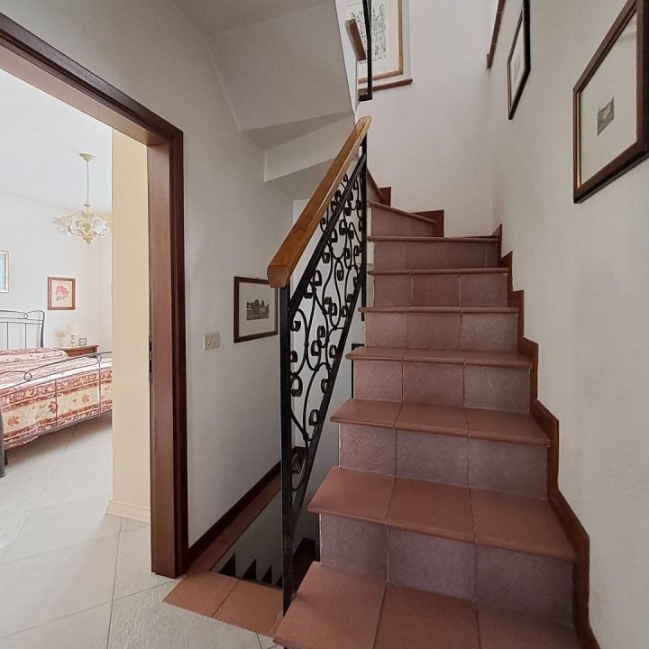 In esclusiva congiunta. Villa singola ubicata in piano di mommio, corredata da giardino su 4 lati con parcheggio interno. La casa si sviluppa su 3 livelli: al piano terra prendono posto l'ampio soggiorno d'ingresso, la cucina con balcone ed uscita nel giardino e la sala da pranzo (che potrebbe essere adibita ad ulteriore camera), dal disimpegno si raggiungono la camera matrimoniale ed il bagno; al piano mansardato si trovano il secondo bagno, 2 vani attualmente adibiti a camera ed un balcone; al piano seminterrato si trova la grande taverna living con caminetto, grande ripostiglio e lavanderia. Alla taverna si accede sia direttamente dall'interno dell'abitazione, sia mediante scala esterna che conduce nel giardino. - maggiori dettagli: porta blindata, camino