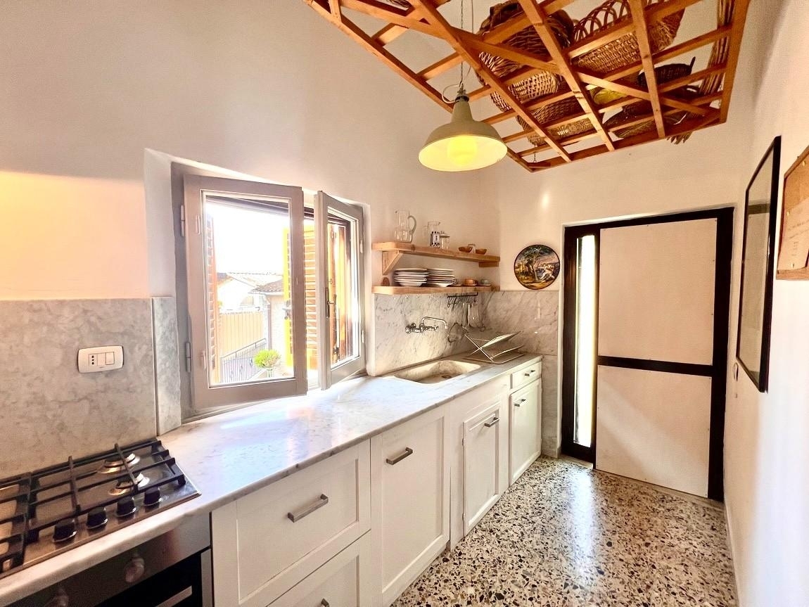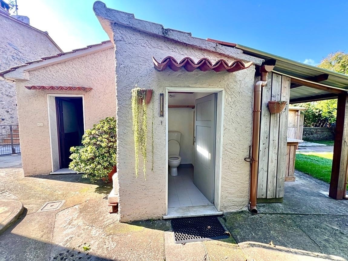 Rif: vendesi in esclusiva semidipendente su due livelli dove al piano terra rialzato troviamo: cucinotto attrezzato, ampio soggiorno pranzo, doppio ingresso e sottoscala. Primo piano - grandissima camera matrimoniale con due finestre, 1 bagno con doccia. nella resede di proprietà insiste un magazzino ad uso garage, piccolo bagno esterno e ampio giardino privato con zona aperitivo, recintato con mura antiche e dove nella corte antistante l' immobile insiste un diritto di passo pedonale del vicino.