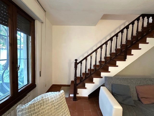 a due passi dalla pineta di ponente e vicino a tutti i servizi in zona tranquilla e residenziale proponiamo in vendita una deliziosa casa semi-indipendente.l'immobile si sviluppa su due livelli al piano terra ci accoglie un ampio soggiorno con caminetto, troviamo subito una camera matrimoniale , servizio, cucina ben attrezzata e grazioso tinello, il primo piano ospita una seconda camera matrimoniale molto spazisa e un comodo bagno finestrato con doccia.molto accogliente cotto e parquet infissi in legno con inferriate, portoncino blindato, subito pronta da abitare!di pertinenza una resede sul fronte strada ideale come posto bici e una resede sul retro con ripostiglio/lavanderia.ottima soluzione per la vostra casa per le vacanze senza spese condominiali in strada poco transitata vicino alla pineta.già arredata!per visite lara
