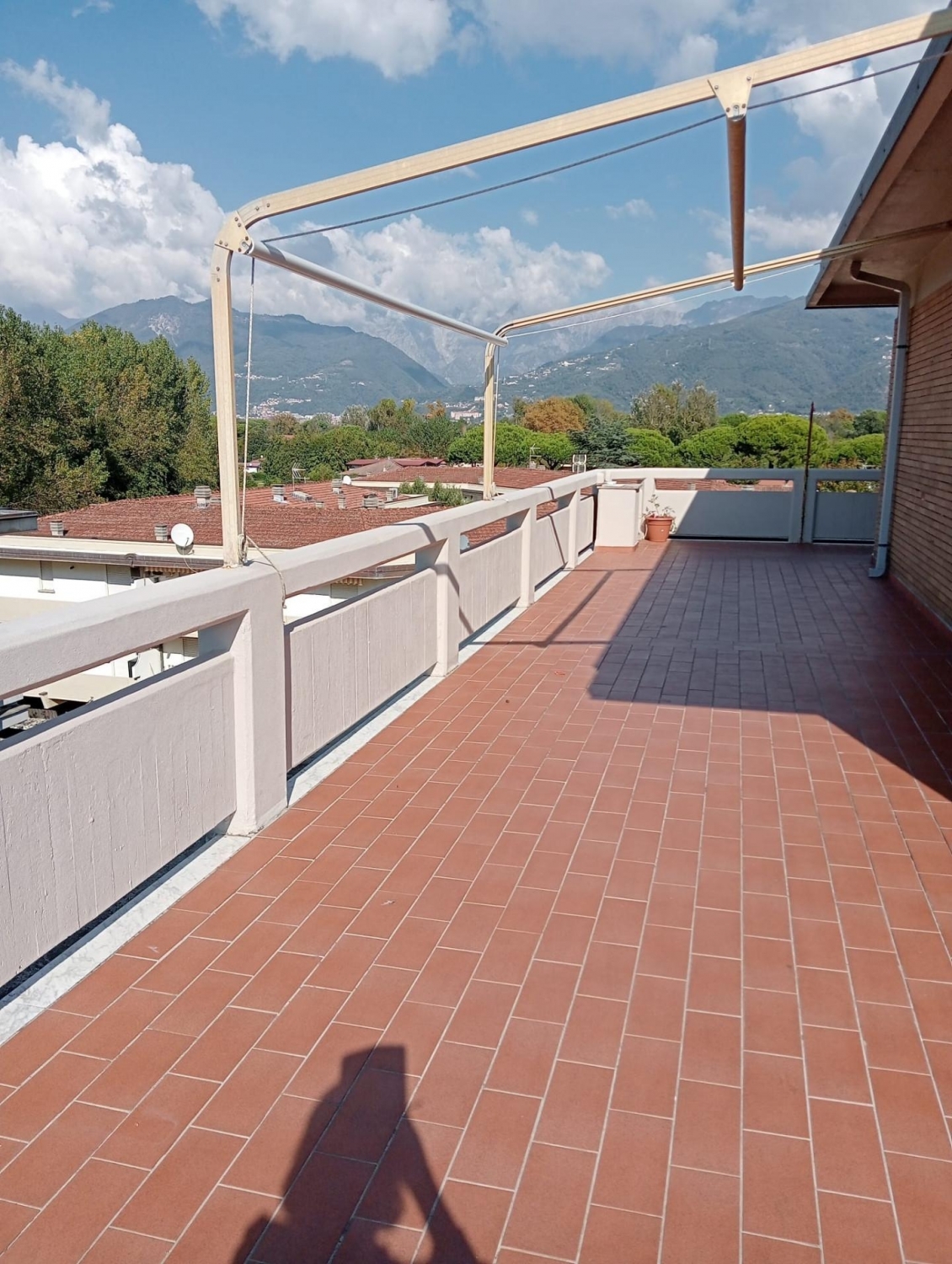 Rif: vendesi attico con vista panoramica mare e alpi apuane a 250 metri dal mare in località ronchi (ms).l'immobile si trova all'ultimo piano di un conominio signorile, quasi esclusivamente abitato da villeggianti estivi, con ascensore e scale in marmo. L'appartamento si compone di ingresso, cucina abitabile, sala soggiorno, camera da letto, cameretta, bagno per una superficie totale di circa 70 mq e l'ampia terrazza sviluppata su 3 lati di 83 mq dalla quale si gode di un'incredibile vista sul panorama montuoso sopra massa da un lato e sul mare dall'altro. Di pertinenza dell'immobile un garage sotterraneo di 25 mq con ingresso condominiale. É inoltre presente un giardino condominiale chiuso adibito a parcheggio, dove tra l'altro sono collocati i cassonetti per i rifiuti. Altre caratteristiche di rilievo: portone blindato, riscaldamento autonomo, ampio armadio a muro nella camera, due tendoni avvolgibili elettrici in terrazzo e un piccolo sgabuzzino. Sul lato più nascosto del terrazzo, è presente una doccia all'aperto di enorme praticità, specialmente al ritorno dalla spiaggia.