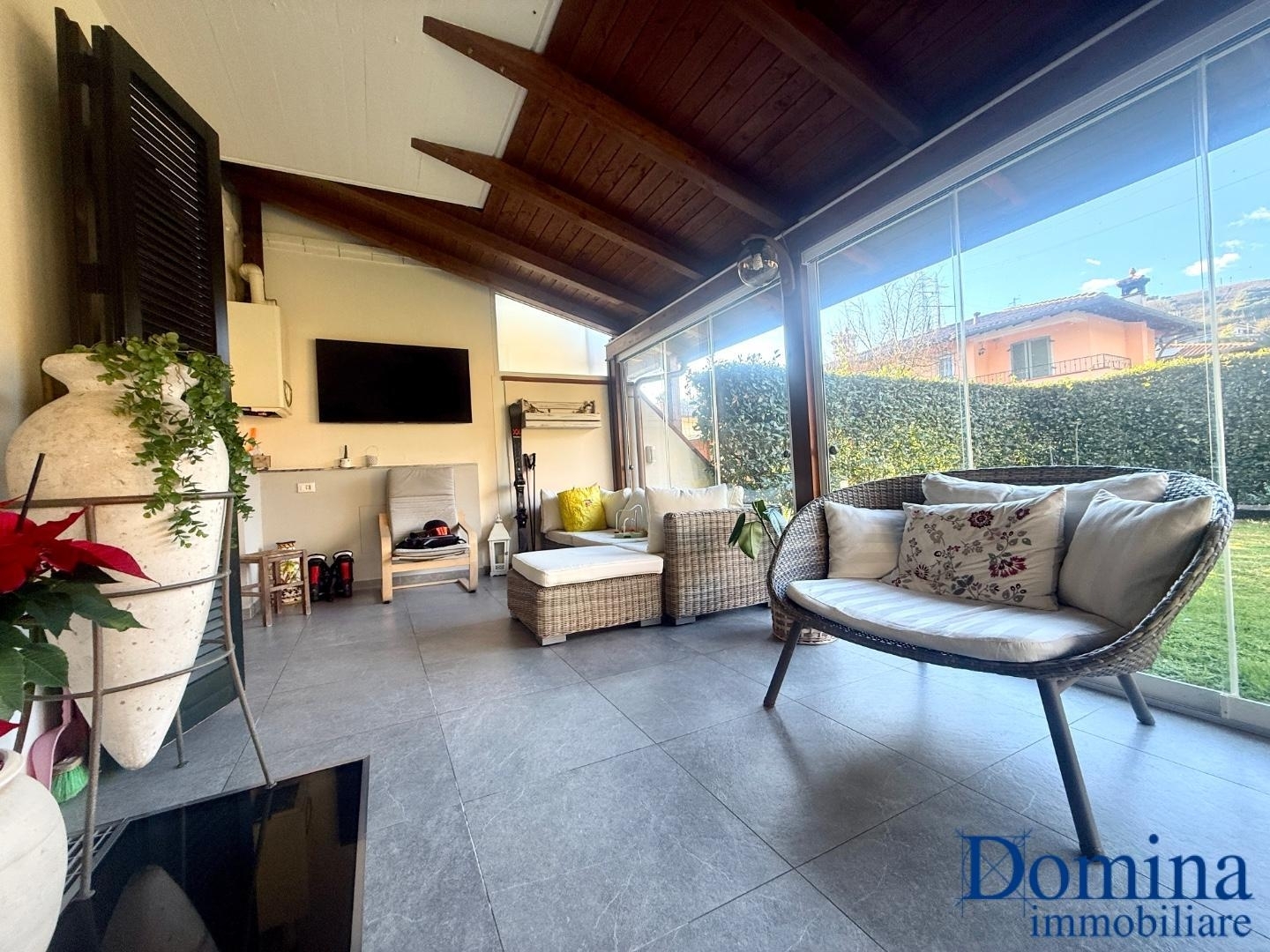 Rif: dna-764 - elegante villetta a schiera in zona san lorenzo immersa nella tranquillità e nel verde, in una delle zone più ricercate di massa, proponiamo in vendita questa elegante villetta a schiera, disposta su tre livelli e perfetta per chi cerca un ambiente sereno e raffinato. La proprietà, ben organizzata e curata nei dettagli, offre ampi spazi e la possibilità di godere di un comfort assoluto. Al piano terra troviamo un ampio soggiorno e una cucina a vista, un ambiente aperto e luminoso che crea un'armonica continuità tra gli spazi interni. Completa il piano un bagno di servizio, con accesso diretto alla veranda, ideale per pranzi e cene all'aperto, e al giardino che si sviluppa su due lati, perfetto per godere delle giornate di sole o per momenti di relax. Al piano primo sono situati due comodi ripostigli, due camere da letto e un bagno, offrendo una zona notte confortevole e funzionale. Al piano seminterrato, un'ampia taverna con camino aggiunge un ulteriore spazio ideale per socializzare, rilassarsi o ospitare gli amici. La proprietà dispone di un giardino privato dove è possibile parcheggiare fino a due auto, mentre due ulteriori posti auto sono disponibili nell'area condominiale protetta. Questa villetta rappresenta un'opportunità unica per chi desidera vivere in un contesto verde e tranquillo, senza rinunciare alla comodità e alla qualità della vita. Perfetta per famiglie, è anche una scelta ideale per chi cerca una casa spaziosa e ben posizionata.