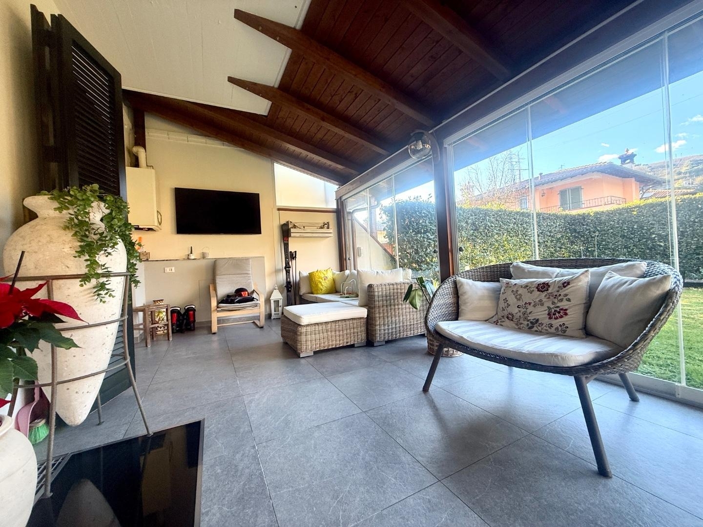 Rif: log-206 - massa - elegante villetta a schiera in zona san lorenzo immersa nella tranquillità e nel verde, in una delle zone più ricercate di massa, proponiamo in vendita questa elegante villetta a schiera, disposta su tre livelli e perfetta per chi cerca un ambiente sereno e raffinato. la proprietà, ben organizzata e curata nei dettagli, offre ampi spazi e la possibilità di godere di un comfort assoluto. al piano terra troviamo un ampio soggiorno e una cucina a vista, un ambiente aperto e luminoso che crea un'armonica continuità tra gli spazi interni. questo piano è completato poi da un bagno di servizio, l' accesso diretto alla veranda, ideale per pranzi e cene all'aperto, e al giardino che si sviluppa su due lati, perfetto per godere delle giornate di sole o per momenti di relax. al piano primo sono situati due comodi ripostigli, due camere da letto e un bagno, garantendo una zona notte confortevole e funzionale. al piano seminterrato, un'ampia taverna con camino aggiunge un ulteriore spazio ideale per socializzare, rilassarsi o ospitare gli amici. la proprietà dispone di un giardino privato dove è possibile parcheggiare fino a due auto, mentre due ulteriori posti auto sono disponibili nell'area condominiale protetta. questa villetta rappresenta un'opportunità unica per chi desidera vivere in un contesto verde e tranquillo, senza rinunciare alla comodità e alla qualità della vita. perfetta per famiglie, è anche una scelta ideale per chi cerca una casa spaziosa e ben posizionata.'l'indirizzo dell'immobile e la posizione sulla mappa vogliono essere un ausilio nell'individuazione della zona, pur rispettando la privacy dei venditori. i dati tecnici dell'immobile, riportati nell'annuncio, sono da ritenersi indicativi. In riferimento ai metri quadri e/o altro, pertanto si rimanda alla documentazione catastale. per rimanere costantemente aggiornati sulle nuove occasioni o per maggiori informazioni su questo ed altri immobili, potete visitare il nostro sito o seguire la nostra pagina facebook 'agenzia immobiliare le logge'.