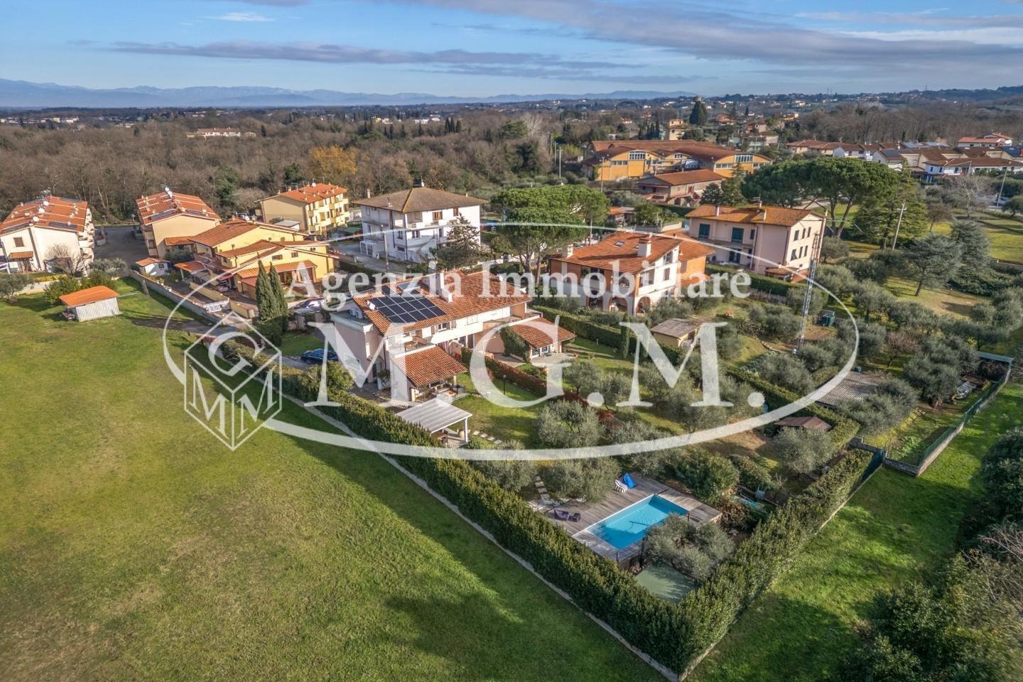 Rif: b3509 - bientina santa colombavilla bifamiliare con piscina, privacy totale e vista sui monti pisaniin splendida posizione collinare, nella ricercata località di santa colomba, proponiamo in vendita villa in bifamiliare situata all'ultimo tratto di una strada a fondo chiuso: una scelta che garantisce massima riservatezza, silenzio e privacy, immersa nel verde e con magnifica vista panoramica sui monti pisani.ci troviamo nel comune di bientina, in contesto collinare esclusivo ma estremamente comodo:tutti i principali servizi sono raggiungibili in circa 2 km, con ingresso fi-pi-li, aeroporto di pisa e autostrada a circa 20 minuti.la casauna villa pronta da abitare, in condizioni impeccabili, dotata di comfort moderni e impianti di ultima generazione.piano terra zona giornol'ingresso introduce in un ampio open space luminosissimo, sapientemente suddiviso in:• cucina con penisola, ideale per colazioni e pranzi informali; zona pranzo con grande camino e accesso diretto a una loggia affacciata sul giardino; zona living relax, con grande apertura vetrata che conduce direttamente all'esterno; bagno finestrato.le ampie superfici finestrate regalano luce naturale e una vista aperta sul verde, rendendo l'ambiente accogliente e scenografico.piano primo zona notteraggiungibile tramite una raffinata scala rivestita in pietra serena a vista, si compone di:• ampio disimpegno con accesso a terrazzo; due camere matrimoniali, di cui una con grande terrazza privata; cameretta; bagno finestrato con doccia; bagno con doccia.piano secondo mansardaraggiungibile tramite una bellissima scala a vista in legno e acciaio, mansarda-sottotetto, ideale come camera ospiti, studio o zona relax.piano seminterratocollegato internamente alla zona giorno, troviamo una cantina/taverna dove è stata realizzata una seconda cucina, lavanderia, doccia, perfetta per momenti conviviali o per una gestione più indipendente degli spazi.esternila villa è circondata da giardino e parco su tre lati, curato e ben organizzato, con piante da giardino, olivi, ed una bellissima siepe lungo tutta la recinzione. Una parte pavimentata, per l'accesso ed i posti auto.nella porzione più ampia e soleggiata, esposta a sud, è stata realizzata una splendida piscina ad acqua salata, in posizione riservata e non visibile, per vivere l'esterno in totale privacy.completano gli spazi relax un gazebo in legno con pavimento in ceramica, ideale per pranzi e cene all'aperto.una parte è pavimentatadotazioni e comfort• impianto domotico luci (2024); allarme interno ed esterno con 5 telecamere; impianto fotovoltaico 9 kw con batteria di accumulo 15 kw; 2 pompe di calore, caldaia a gas metano (sistema ibrido), addolcitore; piscina ad acqua salata, infissi con vetri antisfondamentosuperfici• piano terra: mq 102, logge: mq 9• piano primo: mq 83, terrazze: mq 24• cantina/taverna: mq 39• sottotetto / mansarda: mq 11• giardino: circa mq 750• posti auto interni: n. 5una villa che unisce eleganza, tecnologia e qualità della vita, ideale per chi cerca tranquillità, privacy e un contesto verde senza rinunciare alla comodità dei collegamenti.classe energetica: b - rif. B3509