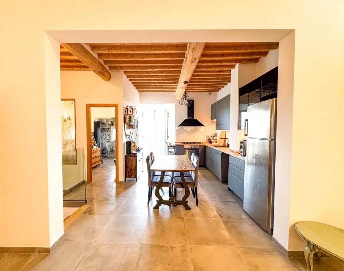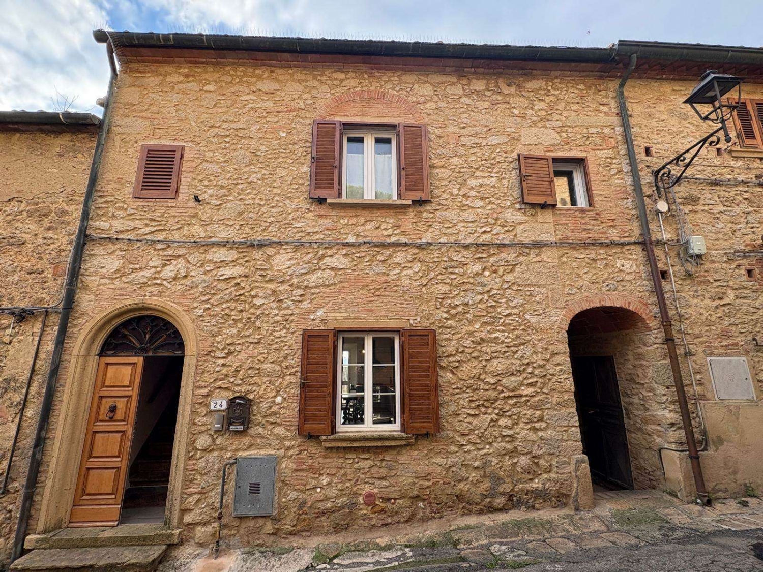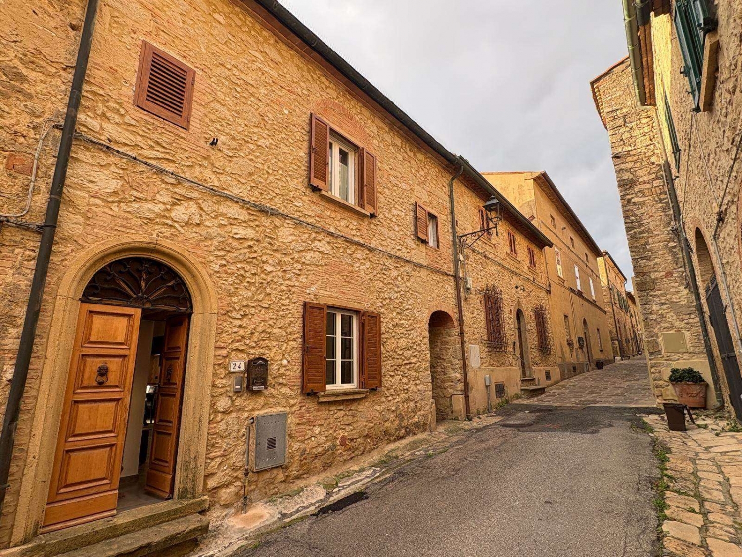 Terratetto con vista panoramica fino al mare nel centro storico di casale marittimo.la proprietà è situata nel centro storico di casale marittimo, pittoresco borgo medievale della toscana incastonato tra dolci colline e vigneti, a soli 15 minuti dal mare e rinomato per le sue strade in pietra, le viste panoramiche e il suo fascino autentico.si tratta di un terratetto, della superficie di circa 200 mq, sviluppato su due livelli oltre al piano seminterrato e cosù composto: al piano terra troviamo l'ampio soggiorrno, la cucina con zona pranzo ed accesso al balcone da cui si gode di una splendida vista sulle campagne circostanti fino al mare, un pratico ripostiglio sottoscala ed uno spazioso bagno finestrato e dotato di doccia; tramite comoda scala interna in pietra si giunge al primo piano che ospita la zona notte composta da due ampie camere matrimoniali di cui una con bagno privato e l'altra con ripostiglio/cabina armadio.infine al piano seminterrato, accessibile sia dall'interno dell'abitazione che tramite ingresso indipendente posto sul retro dell'edificio, è presente una caratteristica taverna dotata di uno splendido camino ed impreziosita da caratteristiche pareti in pietra ed un soffitto a volte.completa la proprietà una corte privata antistante l'ingresso della taverna.l'abitazione è stata recentemente e sapientemente ristrutturata, valorizzando gli elementi tipici dello stile toscano, come i soffitti con travi e travicelli a vista, gli archi e le pareti in pietra ed i dettagli in materiali tradizionali che conferiscono all'ambiente un fascino autentico e senza tempo, integrandoli armoniosamente con tutti i comfort moderni per garantire praticità e raffinatezza; si presenta in ottime condizioni e pronta per essere vissuta. classe energetica: g
