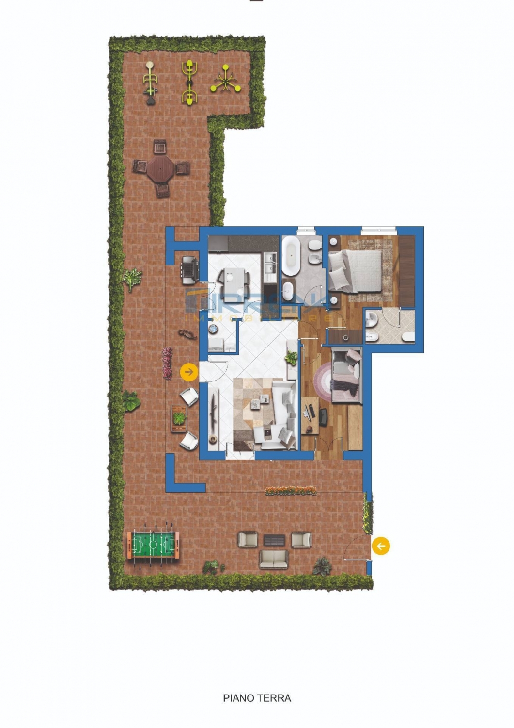 Cascina - nostra esclusiva: bellissimo appartamento con ingresso indipendente, giardino privato e garage! l'immobile, costruito nel 2010, si trova al piano terra di un fabbricato condominiale in perfetto stato di manutenzione.internamente si compone di soggiorno e cucina abitabile con ripostiglio, entrambi locali con accesso diretto al giardino di proprietà esclusiva attrezzato. il disimpegno ci accompagna poi nel reparto notte dove troviamo la grande camera matrimoniale con bagno privato, l'altra camera molto spaziosa ed il bagno principale dotato di vasca e finestra. l'appartamento dispone di riscaldamento centralizzato con ripartitori dei consumi, di infissi con vetro camera, zanzariere e inferriate; predisposizione impianto allarme, mentre è presente l'impianto di condizionamento. completa il tutto il garage di circa 20 mt posto al piano seminterrato.la proprietà si presenta in ottimo stato di conservazione, vicina a tutti i servizi gode inoltre di facile acceso a tutte le vie di comunicazioni quali fi-pi-li, stazione dei treni e fermate autobus, senza considerare che è possibile raggiungere il centro ed ogni servizio anche a piedi!la casa perfetta per chi cerca una soluzione abitativa indipendente, moderna e confortevole, senza rinunciare alla comodità di avere tutti i servizi a portata di mano. scopri la casa in anteprima con il nostro virtual 3d e contattaci per ulteriori informazioni o per fissare una visita all'immobile, indicando il numero di riferimento 4955