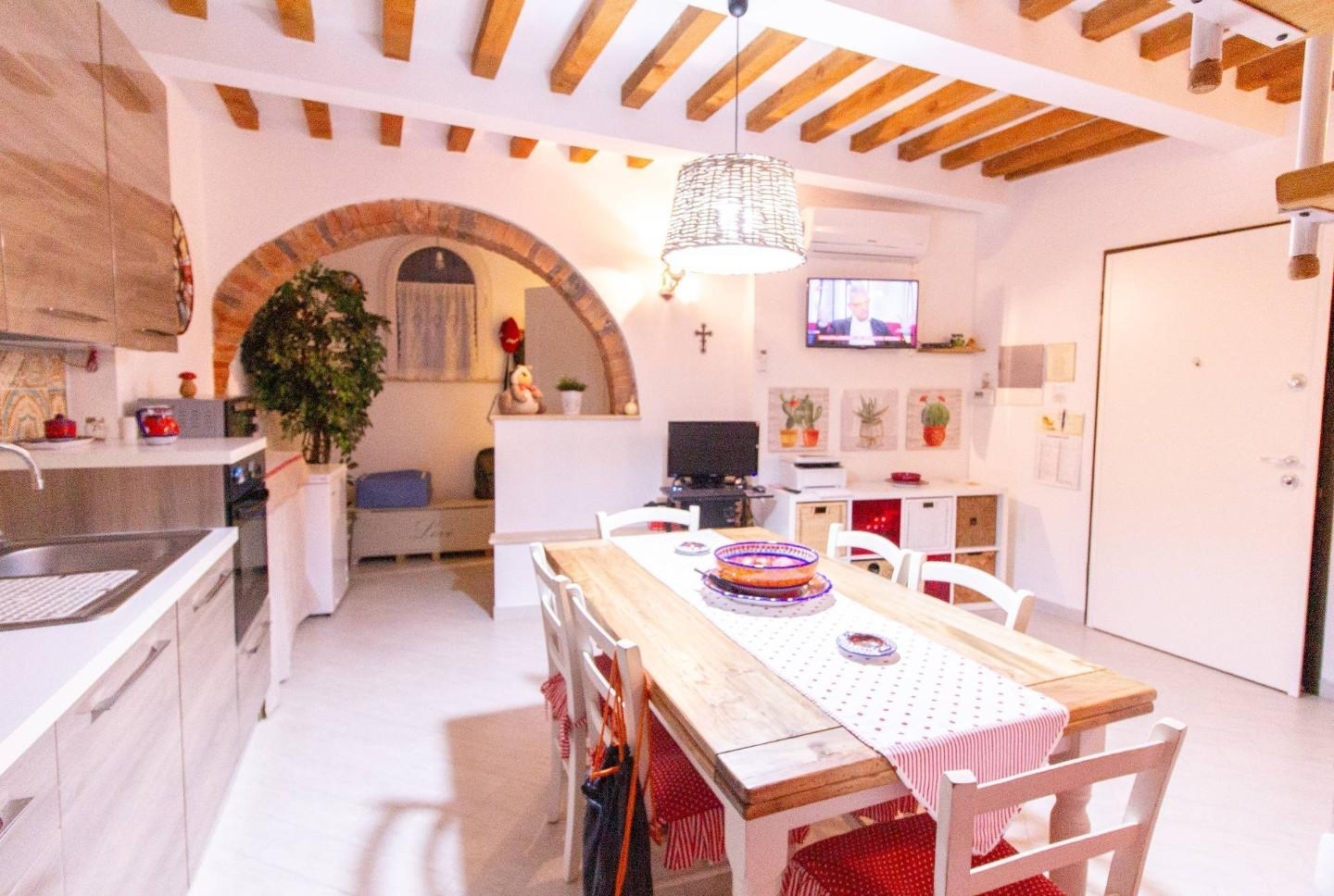 Rif: ad.ze navacchio: terratetto d'angolo ristrutturato recentemente ed in perfette condizioni, disposto su tre livelli e completamente indipendente.l'abitazione al suo interno è composta al piano terra da ingresso in soggiorno con accogliente angolo cottura e bagno di servizio con finestra; al primo piano troviamo ad oggi una stanza di passaggio che potrebbe essere adibita a seconda camera con una grande terrazza abitabile ed un comodo ripostiglio uso lavanderia; al piano superiore infine la camera matrimoniale con cabina armadi e ulteriore bagno.l'immobile grazie alla sua esposizione sud-ovest, gode di una fantastica luce che lo rende luminosissimo.dispone di predisposizione per impianto di condizionamento ad ogni piano, infissi in pvc con vetro camera, zanzariere e porta blindata.gli interni sono in ottimo stato di conservazione e vengono venduti con l'arredo della cucina.per maggiori informazioni o per programmare una visita alla casa, contattare l'agenzia di navacchio indicando il numero di riferimento 4971