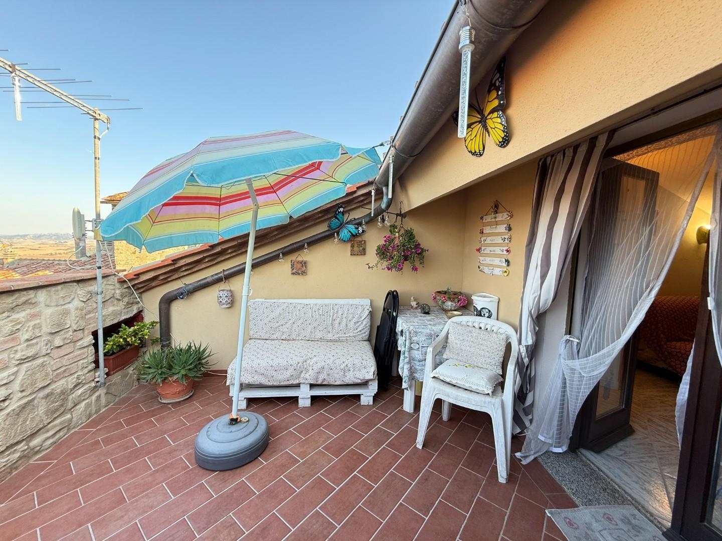Rif: casa angela - terratetto panoramico nel cuore di chianni vista su volterra, garage privato, terrazza da sognonel cuore del pittoresco borgo medievale di chianni, in provincia di pisa, proponiamo un affascinante terratetto toscano su quattro livelli, perfettamente mantenuto e pronto per essere vissuto tutto l'anno.140 mq sapientemente distribuiti in sette locali, con due ampie camere, due bagni, una zona giorno con camino, cucina abitabile in legno massello, soffitta vivibile e un vero gioiello panoramico: un grande terrazzo con vista mozzafiato sui tetti del borgo, le colline circostanti e fino a volterra. Un luogo ideale per cene all'aperto, letture al tramonto e momenti di pura bellezza toscana.il valore aggiunto? un garage privato, raro e prezioso nei centri storici, con accesso carrabile e zona lavanderia. L'immobile è dotato di impianti a norma, caldaia nuova, riscaldamento centralizzato, tetto consolidato e isolato: nessun lavoro necessario, solo da portare le valigie.chianni è un borgo autentico e curato, ricco di vicoli acciottolati, piazzette fiorite, chiese storiche e una vivace vita locale. Tutti i servizi essenziali sono a pochi passi: panifici tipici, ristoranti, bar, pizzerie, farmacia, banca e ufficio postale.distanze strategiche: 30 min da pontedera (stazione treni fs) 45 min dall'aeroporto di pisa 1h15 da firenze 40 min dal mare (castiglioncello, cecina) 35 min da volterra, 1h da san gimignanoun'ottima soluzione sia come prima casa in toscana, che come investimento per locazioni turistiche.in vendita a chianni, in provincia di pisa, splendido terratetto di 150 mq con ingresso indipendente, situato al piano terra. Questa proprietà, costruita nel 1700 e ristrutturata nel 1990, si presenta in ottimo stato e offre 7 locali. Caratterizzata da una posizione tranquilla e da nessuna spesa condominiale, rappresenta un'opportunità unica per chi cerca un immobile storico con il fascino del passato e il comfort del presente. Prezzo: 255.000 euro.