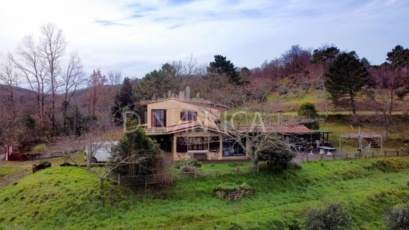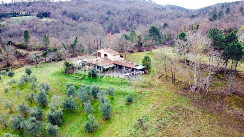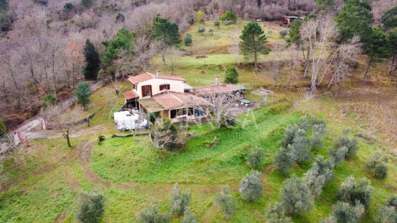 Si propone in vendita casa a solo di recente costruzione, cucina, soggiorno in veranda, taverna, tre camere, locale caldaia, cantina, spa, forno, tettoie, ripostigli e bagno, circondata da 13.000 mq di terreno a prato ed ulivi. misure mq 135 la parte abitativa, mq 28 cantina ed accessori, mq 23 loggiati, 13.300 circa il terreno.la casa è la ricostruzione di un antico deposito in pietra, è stata edificata con lapidei locali in ampliamenti consecutivi. La parte abitativa è composta da ingresso in luminosa veranda, con ampie vetrate su due lati e copertura in travi e mezzane. In collegamento diretto alla veranda, si trova piccola ma graziosa cucina, con penisola in muratura, collegata ad un locale pluriuso ed al servizio igienico. La parete che divide la cucina dal locale limitrofo può essere facilmente rimossa, creando un ampia sala da pranzo. proseguendo dalla veranda, si raggiungono le scale che portano al piano primo, un locale tecnico con adiacente cantina e la taverna. La taverna, è caratterizzata da splendide pareti in pietra ampi spazi e soffitto ribassato. Raggiunto il piano superiore, troviamo due le camere da letto, dalle quali si può godere di vista sulla val d'era val d'arno ed arco appenninico. Un'appendice della casa, contiene il locale legnaia, che è stato attrezzato con una fantastica jacuzzi, separata dalla vallata sottostante da un'ampia vetrata, che consente di godere dell'idromassaggio riscaldato immersi nel panorama toscano. in adiacenza a tale singolarità, protetto da una tettoia che unisce gli accessori alla casa, troviamo il forno a legna, un ampio barbecue ed un comodo ripostiglio. Il tutto adornato e servito da ampio piazzale pavimentato in pietra, fioriere aiuole e natura. gli spazzi esterni sono ampi e funzionali, terrazzati con pianori molto larghi, adornati da alcuni alberi ad alto fusto ed oltre 60 piante di ulivo giovani ma nel pieno della produttività. L'intera proprietà è recintata con rete metallica e dotata di comodo cancello carrabile che ben collega l'ampia area a parcheggio interno, con la pubblica viabilità.le finiture sono di buon livello, curate e ben tenute, gli infissi di ultima generazione, garantiscono un elevato comfort climatico, supportato da doppi generatori di calore, alimentati a gpl o a pellet.multiplo è anche l'apporto idrico, che proviene sia dalla rete pubblica che da pozzo artesiano. L'indipendenza idrica ed i terreni fertili, possono rendere questa terra autosufficiente per il sostentamento alimentare.sono compresi nella vendita: trattore kubota con trinciastorchi e ramatrice, decespugliatore, saldatore, compressore, arredi e tutto quanto si trova nell'immobile.in poche parole si tratta di un vero e proprio piccolo gioiello, non distante dal paese ma completamente immerso nella natura.le principali distanze su strada sono di:km 3 dal capoluogokm 40 dall'aeroporto g.galilei di pisakm 82 dall'aeroporto a. Vespucci di firenzekm 35 dal litorale livornese