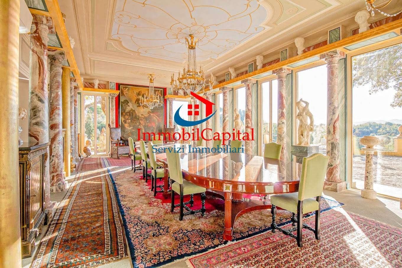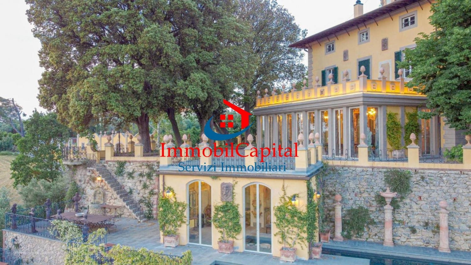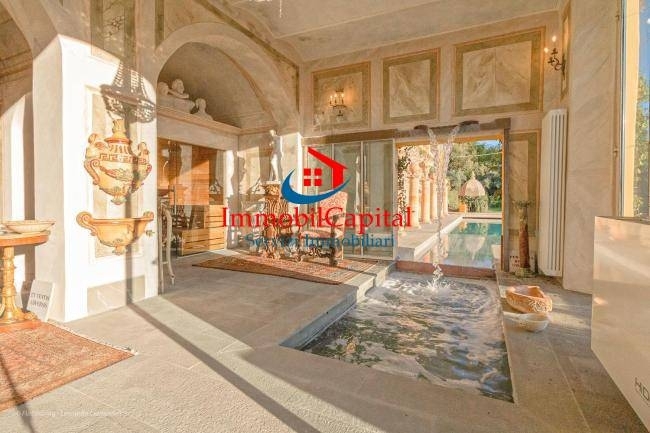 Villa sulle colline toscane la proprietà di lusso, è localizzata sulle colline toscane in provincia di pisa. le ville risultano ubicate in una posizione strategica siamo a 31km dal aereoporto di pisa a 34 km da livorno a 80km da firenze e a 50 km da forte dei marmi il complesso immobiliare, si compone di tre ville, spa, limonaia e annessi agricoli per un totale di circa 4000 mq, il tutto immerso in un'oasi verde di 32 ettari, di grande pregio naturalistico, dove si trovano anche due laghi di proprietà. a sud della proprietà, troviamo la prima villa di origine settecentesca, ; villa fattoria santernetti, di circa 1500 mq, la quale necessita di una totale ristrutturazione, con progetto già approvato .possibilità di 10 camere e 10 bagni il secondo fabbricato, posto a nord della proprietà e denominato villa torre alta del bugallo di circa 1100 mq ed attualmente in discreto stato di manutenzione. Fanno parte di quest'ultima proprietà una casa per il custode, di circa 70 mq, e due appartamenti aggiuntivi di 220 mq, il tutto perfettamente restaurato. Totale 12 camere il terzo fabbricato di circa 1000 mq, attualmente la villa principale e centrale alla proprietà, fu l'antica dimora del pittore macchiaiolo augusto rey che la eresse e la decorò integralmente nel 1895. Ad oggi la villa è stata accuratamente restaurata e ingrandita dagli attuali proprietari che ne hanno fatto una dimora lussuosa, la villa, è costituita da un edificio principale, su tre livelli fuori terracollegata ad una spa situata su di un terrazzamento inferiore rispetto all'entrata principale. l'accesso alla villa avviene al piano terra tramite un doppio ingresso. Le due entrate, rigorosamente in vetro, sono collegate da una galleria ,la stessa disimpegna una sala da pranzo affrescata, collegata all'ampia cucina abitabile, una biblioteca affrescata, due ampi saloni con importanti camini, oltre ad una zona di servizio ed un primo bagno. Completa il piano terra la magnifica sala delle colonne di circa 90 mq, orientata verso la valle a sud ovest e totalmente a vetri, che permette di godere di una luce naturale e da cui si può accedere alla terrazza esterna. Al piano primo troviamo tre ampie camere da letto, una delle quali con spaziosa area giorno e camino, oltre ad uno studio ed uno spogliatoio. Tutte le camere dispongono di ampi bagni en-suite ed una risulta dotata di terrazza privata con vista della torre del bugallo. al secondo piano troviamo quattro ampie camere da letto con bagni en-suite, ed il vecchio studio dell'artista attualmente trasformato in sala cinema, dove possono comodamente sedere otto persone. al terzo ed ultimo piano , troviamo una torretta con terrazzo, dal quale si può godere di una vista a 360 gradi delle colline toscane al piano terra troviamo una spa con area relax collegata esternamente ad una grande terrazza. Nella spa si trovano una piscina riscaldata con idromassaggio ad alta pressione e cascata d'acqua , collegata alla piscina esterna, una sauna finlandese e al piano inferiore il locale spogliatoio con bagno. La piscina esterna, una infinity pool in pietra dotata di idromassaggio e doccia calda, è circondata da solarium posto sulla terrazza . a poca distanza dalla villa completato la proprietà una bella pergola esterna, un edificio di nuova concezione ma che richiama lo stile delle scuderie dell'epoca. Al suo interno trovano vari locali ad uso magazzino, bagni in marmo, la cucina collegata all'ampio salone delle feste, oltre ad un appartamento per personale di servizio. A completamento troviamo una limonaia di circa 300 mq, meravigliosi giardini all'italiana, il giardino all'inglese, un oliveto con circa mille piante di olivi. Recentemente è stato anche ripristinato un antico vigneto di circa 2,5 ettari vi è inoltre la possibilità di acquistare ulteriori 70 ettari attigui con varie strutture coloniche con quote di riserva di caccia autorizzata...