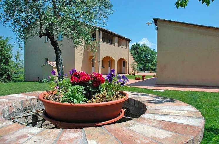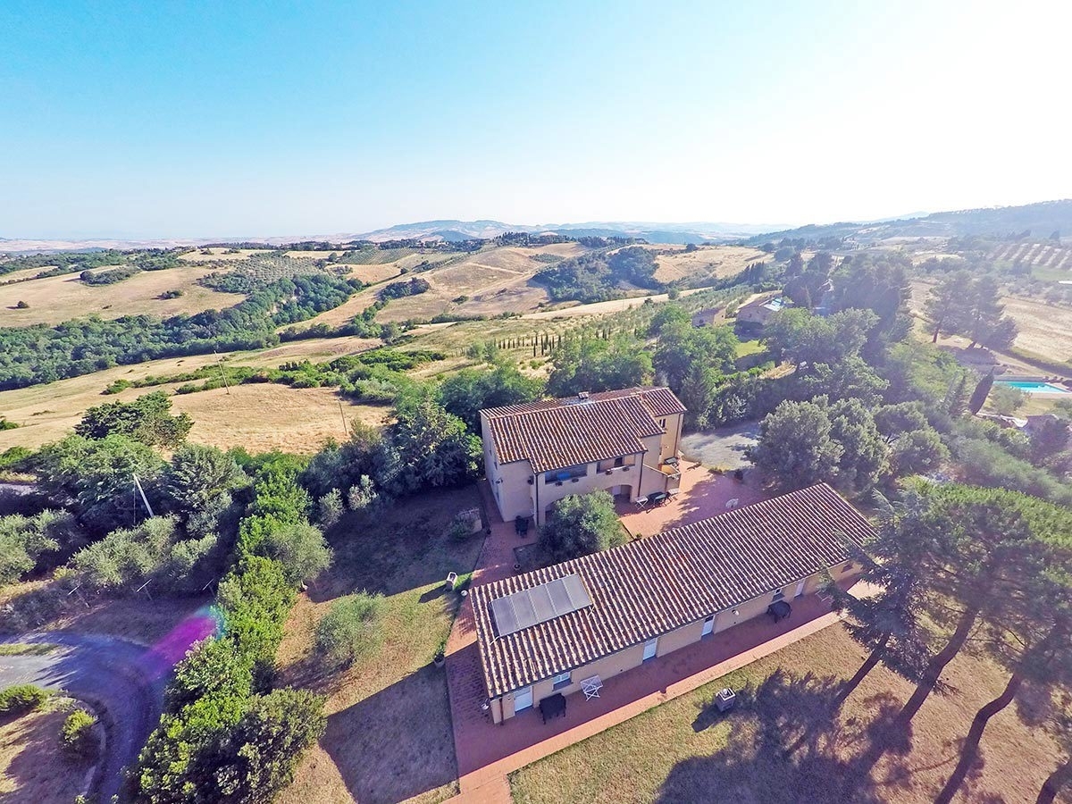 Bellissima casa vacanze immersa nelle colline toscane composta da nove bilocali di circa 50 mq l'uno completamente ristrutturati con finiture in stile toscano. Ogni appartamento è composto da una zona giorno con cucina e divano letto, una camera matrimoniale e un bagno.completa la proprietà una piscina circondata da vegetazione mediterranea.possibilità di affittare 6 ettari di terreno circostante per eventuale espansione ad agriturismo.