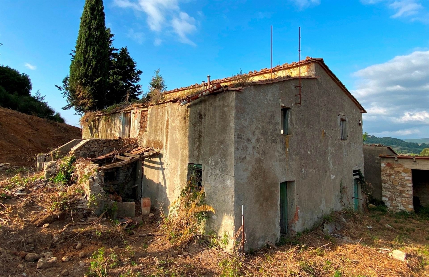 Pressi canneto, 35 km dal mare, in posizione dominante con ampio panorama, in zona isolata e incontaminata, circondato da circa 5 ha di terreno con seminativo e bosco, vendesi casa colonica di 330 mq totalmente da ristrutturare. Piano terra: stalla, carraia, cantine, ripostiglio. Piano primo: cucina, 4 camere, wc. Ampio annesso in pietra e porcilaia. Antica cisterna per la raccolta dell'acqua. Classe energetica: g epi: 400 kwh/m2 anno