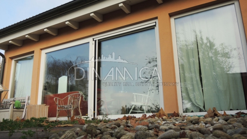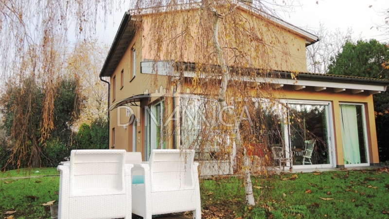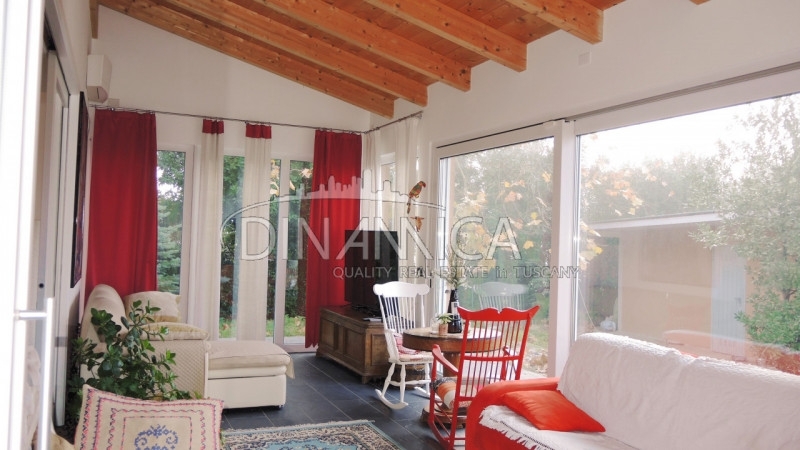 Rif-1004-93 rivolgersi ad andrea a soli 5 minuti dal centro di pisa, all'interno di un contesto agrituristico di alto livello, si propone in vendita una casa di appena 7 anni, costruita con il sistema casa clima. Al suo interno è composta al piano terra da un ampio e luminoso open space, nel quale sono collocate la cucina e la zona pranzo. In adiacenza, separata da una grande vetrata a scomparsa, il locale soggiorno realizzato in una luminosissima veranda. Tamponata con ampie vetrate, la rendono una continuazione dell'ampio giardino del quale se ne gode la vista. Sul lato opposto, attraverso un comodo disimpegno, si raggiungono, una camera matrimoniale, con locale armadi ed un raffinato bagno. Al piano superiore, in affaccio sulla scala a giorno, un breve corridoio, distribuisce due camere matrimoniali, due camere doppie e tre bagni, due dei quali in uso esclusivo di due camere. La superficie dell'unità immobiliare è di 169 mq e 28 mq di veranda. l'edificio è circondato da oltre 500 mq di giardino esclusivo, in parte pavimentato, in parte a ghiaino e prevalentemente a prato. I confini sono segnati da quinte arboree e cespugliacee, l'accesso al lotto avviene tramite una breve tratta di vialetto a comune con l'azienda agricola che circonda tutta la porzione in vendita. La cura del verde e l'eleganza degli spazi esterni, contraddistinguono tutta l'area.vi è disponibilità di ulteriore terreno, che dovrà essere valutato separatamente.caratteristiche impiantistiche e finiture:l'impianto di riscaldamento è affidato a raffinati split presenti in ogni locale, alimentati da un sistema fotovoltaico da 5 kw con accumulo di ultima generazione. Gli infissi in pvc bianco a taglio termico, sono dotati di triplo vetro antisfondamento. L'acqua calda sanitaria, è prodotta dalla pompa di calore, con un sistema di backup affidato ad una caldaia a metano. Gli scarichi delle acque reflue sono convogliati in un sistema di fitodepurazione.attualmente la casa ha una destinazione d'uso agricola, necessita di cambio d'uso e di realizzare finiture interne al piano primo.i costi e le pratiche per eventuale conversione a civile abitazione residenziale, saranno a cura dell'attuale proprietà.le principali distanze:5 km da pisa1 km da san giuliano terme15 km dal mare