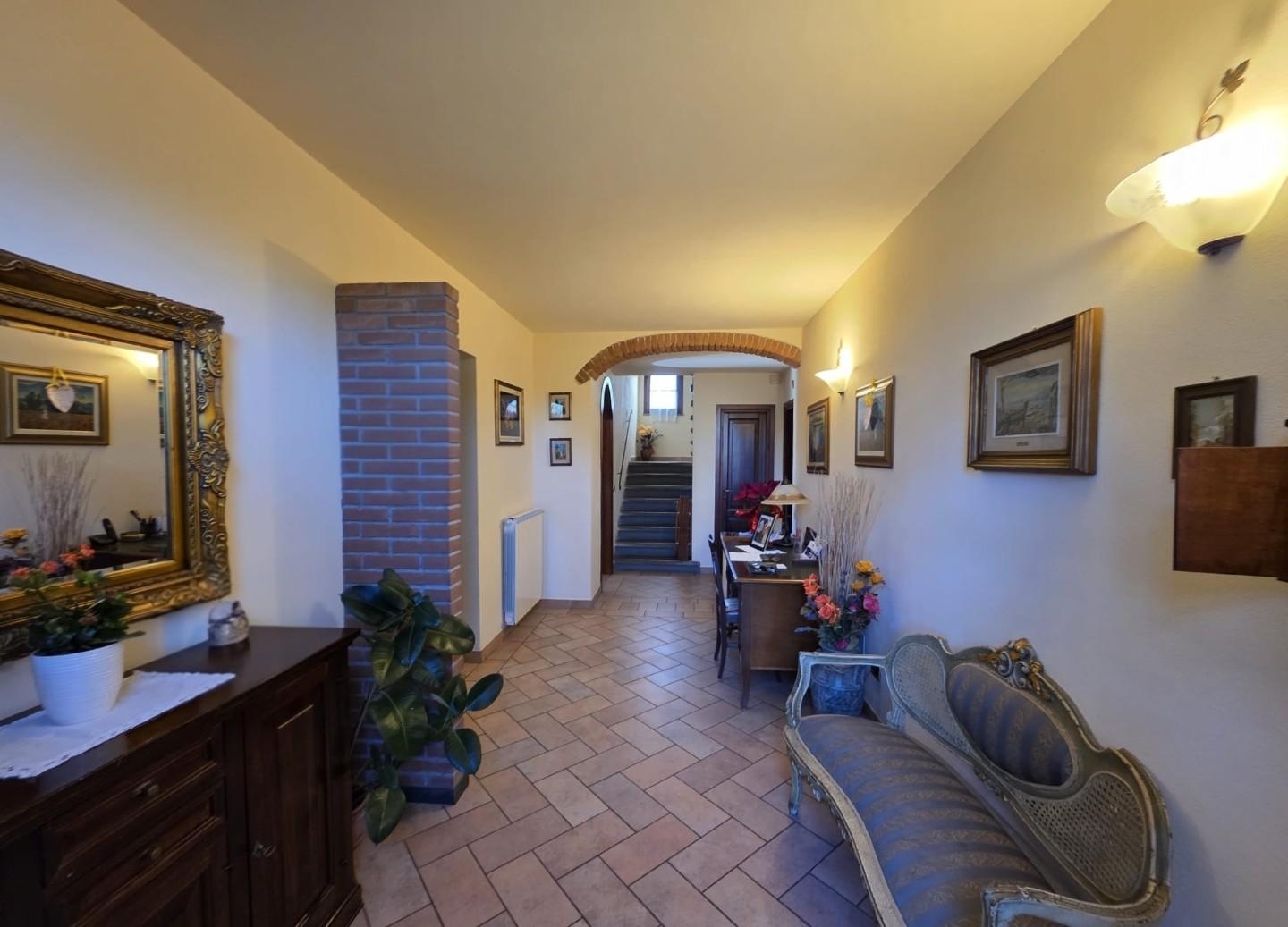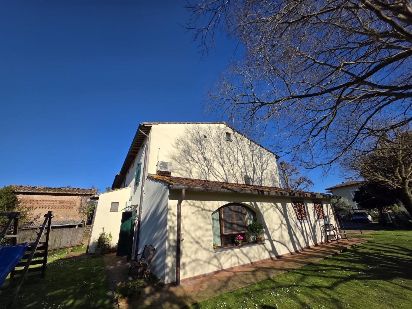 Rif: santa maria a montein posizione collinare nel cuore di santa maria a monte, si trova questo affascinante terra-tetto libero su tre lati. Costruito alla fine del 1800 e ristrutturato completamente nel 2003, questo immobile offre sei ampi locali per una superficie totale di 198 mq. un caratteristico marciapiedi in mezzane rifinisce esternamente tutta la struttura. al piano terra, dove ogni spazio è stato curato con gusto per garantire un'abitazione confortevole e ricca di dettagli caratteristici, troviamo l'ingresso, la sala da pranzo con cucina a vista, un ampio salone in cui sono stai creati due spazi distinti, con bella vetrata che si affaccia sul giardino, un comodo ripostiglio lavanderia e un garage adiacente di 16 mq.dall'ingresso si accede alla scala che conduce al piccolo bagno con doccia situato al mezzanino e al reparto notte, dove troviamo tre camere matrimoniali e un bagno con doccia molto spaziosa.l'immobile è dotato di vari accessori quali: zanzariere, allarme perimetrale e alle finestre, doppio termostato per la regolazione dell'impianto a metano, due climatizzatori (uno al piano terra e uno al primo piano), tettoia per 3 posti auto.tramite il cancello automatico si accede alla proprietà, che dispone di un bellissimo giardino di circa 700 mq e un terreno di circa 6.000 mq, adattabile a coltivazione e già dotato di un' oliveta con 55 piante.attualmente abitato dalla proprietaria, ma libero velocemente. splendido oggetto che si presta perfettamente per chi ama la vita di campagna, da vedere!!classe energetica: g - rif. 2522