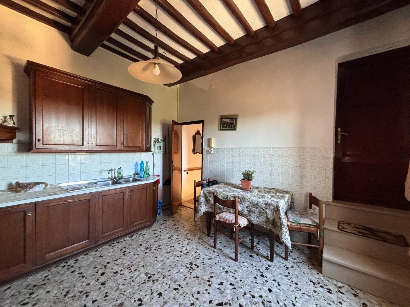 Rif: porzione di casolare con terreno - comune di terricciola;in una delle deliziose frazioni che si trovano a soli 2,8 km del comune di terricciola, vi presentiamo questa porzione di un casale risalente al 1700 circa, con adiacente un grande cortile e un terreno di proprietà coltivato ad oliveta e alberi da frutto.completa il tutto un garage molto comodo per la propria auto.l'accesso alla proprietà si trova al piano terra e dopo aver salito alcuni gradini, al piano primo, troveremo alla nostra sinistra il disimpegno che mi conduce alla cucina abitabile e al soggiorno, alla nostra destra invece troveremo un primo corridoio che sa ancora raccontare l'eleganza che questo edificio storico ha rappresentato per tantissimi anni, che ci condurrà alle due camere da letto di cui una con bagno. Continuando la nostra visita sempre al solito piano, troveremo una terza grande camera matrimoniale, il bagno e un grande ripostiglio. al piano secondo invece avremo la possibilità di poter creare almeno altre 4 stanze grandi e luminose che guardano verso un bellissimo panorama sulle colline di terricciola. In pratica una tela bianca dove possiamo creare una nuova e comoda abitazione signorile.torniamo fuori, perchè le sorprese non sono finite, completano il tutto anche una grande cantina e un'altro locale ristrutturato che potrebbe diventare un bilocale per gli ospiti!insomma ci sono alcuni lavori da fare tra cui una parte del tetto ma questa proprietà cosù grande da poter essere divisa anche tra due famiglie ha molto da offrire! ottimo anche come investimento per case vacanze o come b&b visto la grande affluenza turistica che c'è in questa parte della toscana!la zona è molto tranquilla, adatta ai bambini, vi ritroverete catapultati in un mondo dove ancora il tempo scorre lento e in armonia con la natura circostante.non sarete lontani dai negozi di prima necessità che distano solo 900 metri e se dovrete fare un spesa più importante avrete a disposizione il supermercato conad in località la capannina a soli 3,5 kmdistanze dai luoghi importanti:terricciola 2,8 kmlajatico 9 kmcasciana terme 7 kmpisa aeroporto 40 kmfirenze 85 kmlucca 47 kmil mare ( castiglioncello) 41 km.