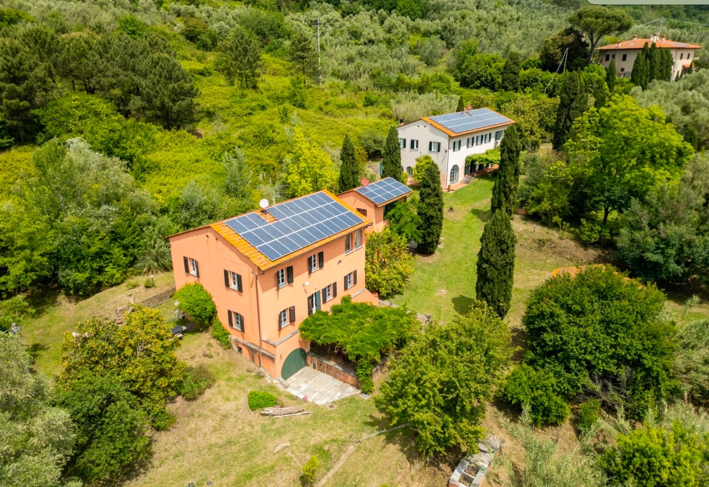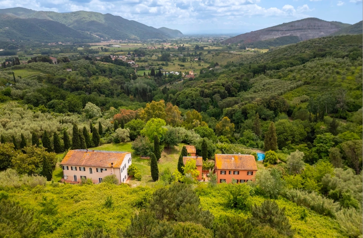 Rif: pisa-1597 - antica tenuta collinare di oltre 16 ettari in vendita tra lucca, pisa e la versiliaimmersa nel verde delle colline di pisa, in una zona di facile accesso, è in vendita quest'antica tenuta, ristrutturata mantenendo le originali caratteristiche architettoniche tipiche della campagna toscana. La tenuta in vendita tra lucca, pisa e la versilia, inserita all'interno di un terreno di oltre 16 ettari, si compone di tre case coloniche, vari annessi, un box ed un magazzino per un totale di circa 750 mq, oltre a due piscine, ed un lago artificiale per la raccolta delle acque piovane, popolato da splendide ninfee.entrando nella proprietà si ha la sensazione di essere immersi nella natura più incontaminata; infatti, la tenuta è caratterizzata da terreni collinari, per lo più con balze di ulivi, alberi da frutto, boschi di querce, pini e lecci, all'interno dei quali si snodano vari sentieri dove è possibile fare piacevoli camminate ed è anche attraversata da un ruscello il cui rumore dell'acquaregala momenti di benessere. La tenuta ed i vari fabbricati godono della vista dell'ampia valle del serchio e dei monti pisani che separano pisa da lucca.le tre case coloniche rappresentano la vita rurale di un tempo; infatti, si possono distinguere la grande villa padronale, affiancata dalla casa del fattore, oltre all'originario fienile recuperato a civile abitazione. Tutte le abitazioni sono state ristrutturate nel rispetto delle caratteristiche architettoniche originali e tipiche delle case di campagna toscane, tramite un'accurata conservazione della maggior parte dei pavimenti in cotto originali, i soffitti con travi in legno e mattoni, le scale in pietra e nel giardino sono presenti anche due antichi lavatoi.la villa padronale si eleva su due livelli fuori terra per un totale di circa 370 mq. Un comodo ingresso, posto su lato corto del casale ci accoglie e tramite una porta a vetri in stile inglese si accede all'ampia zona giorno, sapientemente suddivisa tramite arredi e mossa da qualche scalino che delimita meglio gli usi dei vari spazi. Infatti, sono presenti la sala da pranzo formale, conaccesso diretto alla piacevole veranda esterna del giardino, due zone relax con antico e importante termo camino. Da quest'area, tramite qualche scalino si raggiunge anche la grande cucina in stile toscano, dotata anche di un secondo accesso dal vano scala e collegamento alla sala da pranzo formale. Completa quest'area un servizio igienico per gli ospiti.salendo al primo piano, un corridoio disimpegna le cinque camere matrimoniali di generose dimensioni e con splendida vista sulla natura circostante, una delle quali con bagno en-suite, una camera singola o studio, due ampi bagni con doccia. Completa la villa padronale un miniappartamento indipendente al piano terreno, composto di cucinotto, camera matrimoniale con bagno, moltoutile in caso di personale di servizio, in quanto collegato anche internamente all'abitazione.separata da alcune splendide piante di arancio, è collocata la casa del fattore. Un antico casale, di circa 245 mq, suddiviso in due appartamenti e dotato anche di ampio garage al piano terra di circa 25 mq. L'accesso all'unità abitativa più piccola si ha dal piano terra rialzato e si sviluppa tutta su un piano. Infatti, entrando siamo accolti dalla zona giorno con cucina a vista, tramite undisimpegno si raggiunge la zona notte composta da due camere matrimoniali e da un bagno con doccia. L'appartamento più grande, invece, si sviluppa su due piani fuori terra. L'entrata è al piano terra rialzato tramite ampia terrazza vivibile e che ci accompagna nella zona giorno, dove si trova un ampio soggiorno collegato alla cucina dotata di terrazza di pertinenza. Tramite lascala in pietra posta sulla destra rispetto all'entrata si raggiunge il primo piano dove si trova la zona notte composta da 4 luminose camere matrimoniali, due delle quali con doppia esposizione e di ampie dimensioni, un salottino con vista meravigliosa e due bagni con doccia.nell'antico fienile, recuperato a fini abitativi, è stato ricavato un appartamento su due piani di circa 60 mq, al piano terra la zona giorno con cucina a vista e al piano superiore una camera con bagno.a completamento della proprietà troviamo alcuni annessi e magazzini per circa ulteriori 50 mq, oltre alle due piscine, collocate in posizioni riservate ed in terrazzamenti inferiori rispetto a quelle delle varie abitazioni, una delle quali riscaldabile e dotata anche di struttura telescopica di copertura per poter usufruire della piscina anche durante la stagione invernale.intorno alle piscine ampie zone prendisole, risultano circondate da piante della macchia mediterranea.la presenza di due piscine potrebbe essere ottimale per chiunque desiderasse investire anche in un'attività agrituristica con una zona da dedicare alla propria residenza principale.la proprietà include anche un pozzo artesiano e impianti fotovoltaici per un totale di oltre 25 kw di potenza. in vendita sulle colline di pisa risulta essere l'investimento ideale per chiunque desideri un posto immerso nella natura, a vocazione rurale, non troppo isolato e prossimo ai servizi ed a due delle più belle città d'arte toscane: pisa e lucca, raggiungibili in meno di 15 minuti di auto, e vicinissima alla versilia.