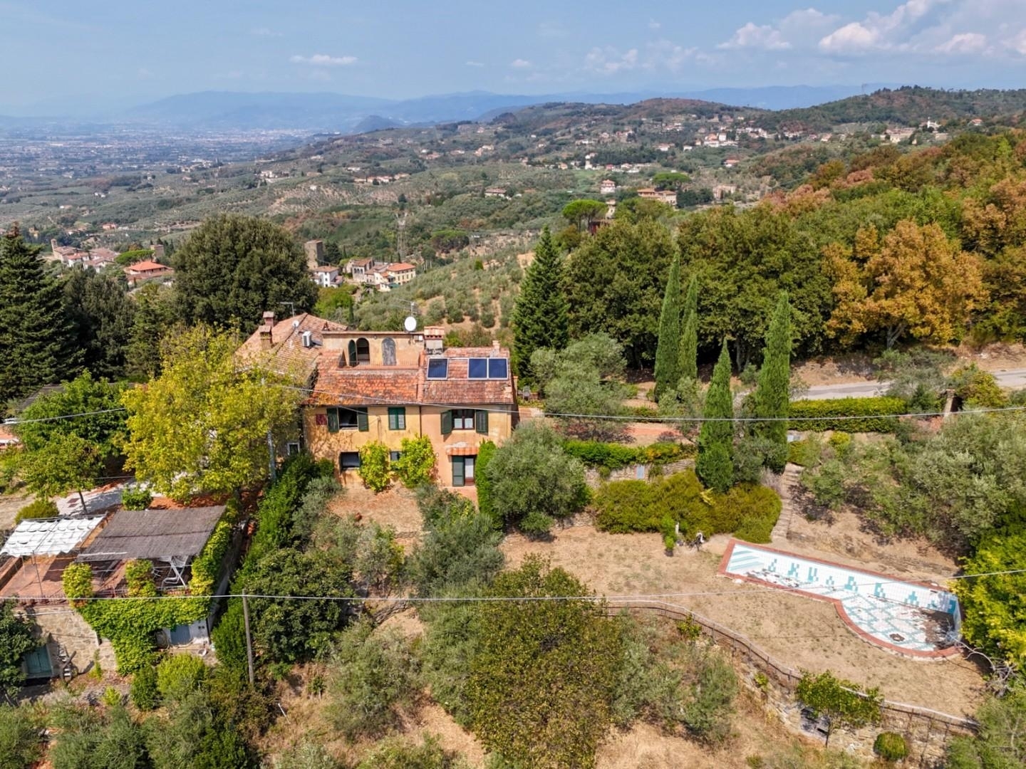 Rif: l 514 - lamporecchio collina, in posizione panoramica, facilmente raggiungibile tramite una stretta strada asfaltata, casolare libero su 3 lati, attualmente diviso in 4 unità immobiliari, già sul mercato degli affitti turistici. gli appartamenti sono in buone condizioni, completamente indipendenti e dotati di giardino esclusivo. completa la proprietà la piscina, il giardino comune, il terreno con gli olivi ed il parcheggio privato. ottimo come casa privata e per affitti turisticieuro 315.000