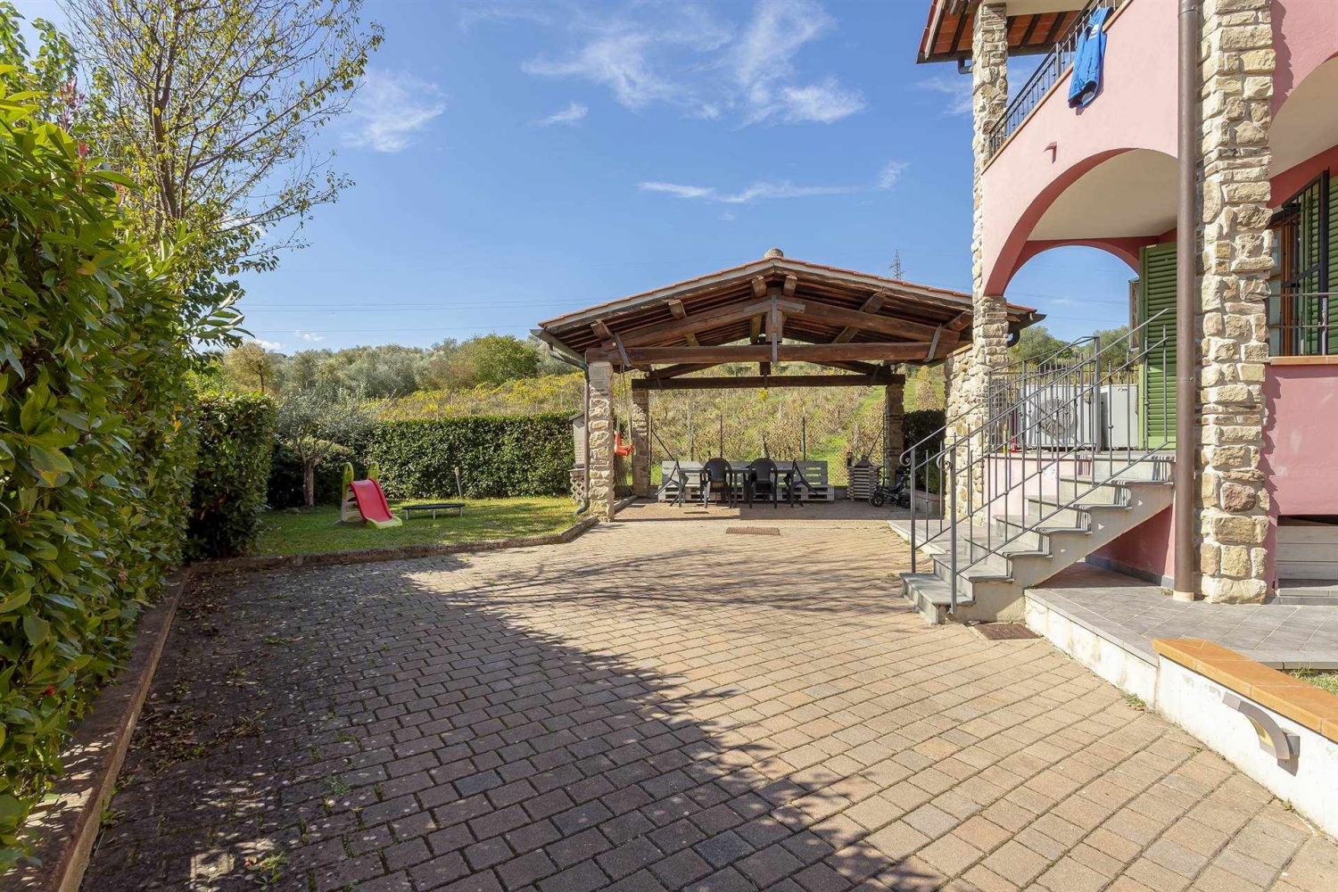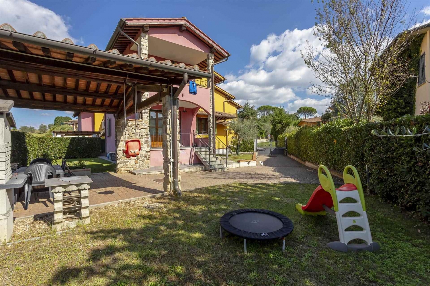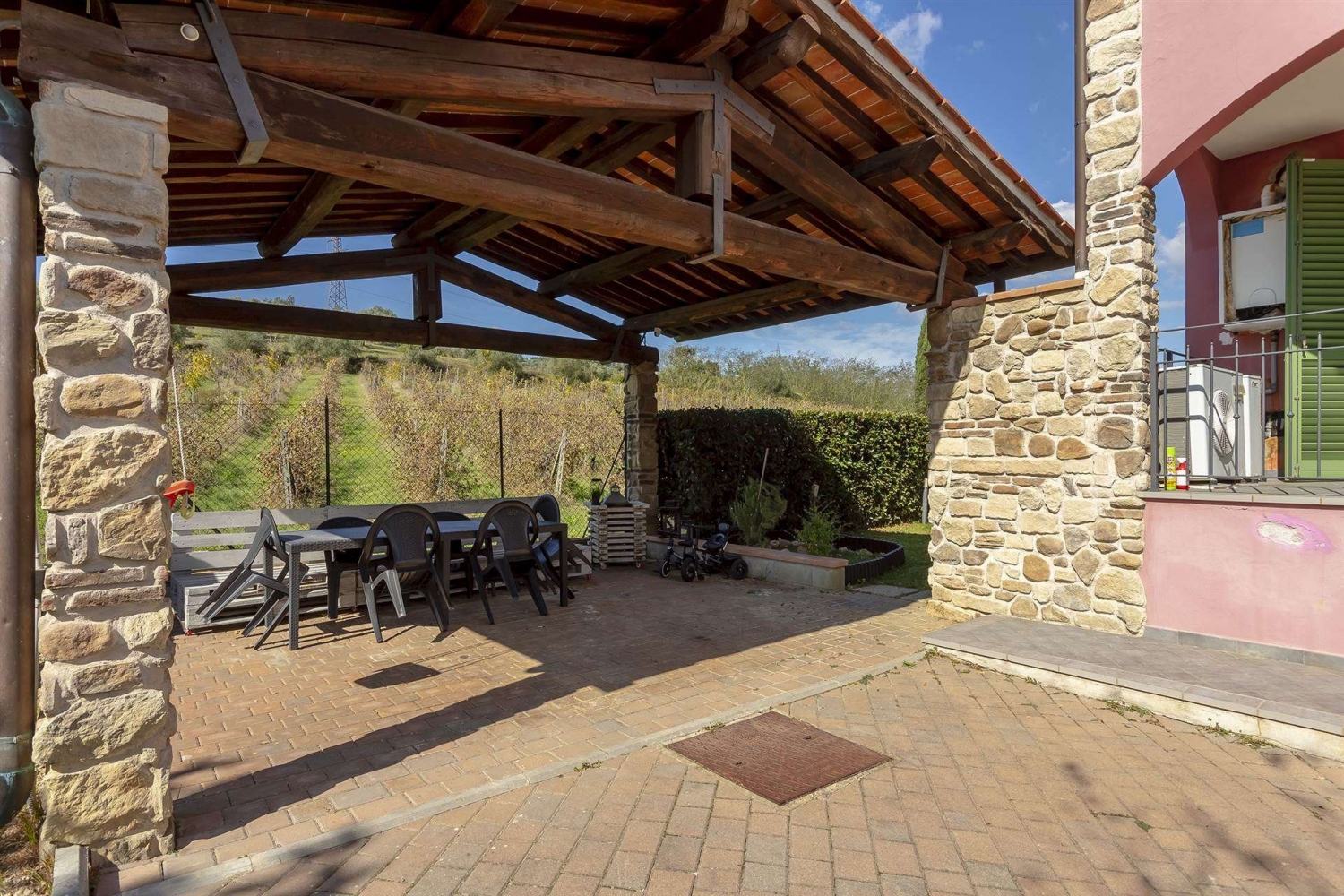 Nostra esclusiva. Poggio a caiano, località bonistallo, in contesto prettamente residenziale, silenzioso e riservato, al tempo stesso vicino al centro urbano, si propone in vendita deliziosa villetta angolare libera su tre lati di 137mq catastali oltre giardino, loggiato e posto auto coperto. L'immobile, di recente costruzione, è disposto su due livelli fuori terra oltre seminterrato. Il piano seminterrato è composto da posto auto coperto con accesso sia pedonale che carrabile da rampa esterna, nonchè ampio vano finestrato adibito a taverna corredato di antibagno, bagno, sottoscala e scala interna che collega al piano terra. Quest'ultimo si compone di ingresso principale da resede esclusivo, un accogliente e luminoso soggiorno, cucina abitabile con ripostiglio, antibagno, servizio igienico, disimpegno e un pratico loggiato con accesso al suddetto giardino di circa 200mq, libero su tutti e tre i lati dell'immobile e perfetto per trascorrere piacevoli momenti di convivialità con amici e familiari. Il piano primo ed ultimo, accessibile mediante scala dalla zona giorno, è costituito infine da bagno finestrato, disimpegno, due camere da letto singole e un'ampia camera da letto matrimoniale corredata di una pratica terrazza coperta con deliziosi affacci panoramici sui vigneti circostanti e sul suggestivo scenario delle colline medicee. Oggetto in ottime condizioni, pari al nuovo, impreziosito da finiture di pregio e da accessori quali impianto di allarme, videocitofono, zanzariere, inferriate anti-intrusione, porta blindata e impianto di climatizzazione in tutte le stanze. Si presta idealmente per famiglie numerose amanti del concept moderno-contemporaneo e alla ricerca di soluzioni indipendenti in zone verdeggianti e residenziali, lontano dallo smog e dalùi rumori cittadini. Richiesti euro 579.000, libero in tempi tecnici, vendesi. classe energetica: c epi: 86,6 kwh/m2 anno