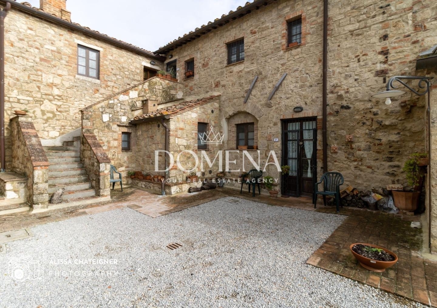 Rif: domena 214 - un rifugio di charme nel cuore delle crete senesi immersa nel paesaggio dorato delle crete senesi, dove le colline si inseguono dolcemente sotto cieli sconfinati, sorge questa splendida casa in mattoncini toscani, libera su tre lati e parte di un borgo riservato e curato. Con i suoi 225 mq di eleganza rustica e calore autentico, rappresenta un perfetto equilibrio tra tradizione e comfort moderno.un ingresso indipendente accoglie l'ospite in un ampio soggiorno con camino funzionante, cuore pulsante della casa, dove le travi a vista e la stufa a pellet diffondono una sensazione di intimità e benessere nelle serate più fresche. Accanto, una cucina luminosa e conviviale, ideale per colazioni lente e cene in compagnia.la zona notte è accogliente e funzionale: due camere matrimoniali spaziose, una cameretta doppia e una cameretta singola, perfette per ospitare famiglia e amici. completano gli ambienti tre bagni, tutti finestrati, due dei quali con box doccia, oltre a un pratico angolo lavanderia e un ripostiglio.gli infissi in legno con doppi vetri, le zanzariere e le inferiate offrono sicurezza e comfort, mentre le utenze autonome e il riscaldamento a radiatori collegato alla stufa garantiscono efficienza e indipendenza.all'esterno, il resede privato con gazebo, accessibile direttamente dal soggiorno, regala uno spazio magico dove rilassarsi, leggere un libro o condividere una cena al tramonto, con il profumo dell'erba e la vista sul borgo.a disposizione dei residenti una piscina di 25 metri e un campo da tennis, ideali per godere del tempo libero all'aria aperta. non mancano quattro posti auto coperti privati all'interno del borgo, un privilegio raro in questa zona.questa proprietà rappresenta una perfetta fusione tra autenticità toscana e comfort contemporaneo, un luogo dove ogni dettaglio parla di casa, serenità e amore per la bellezza.