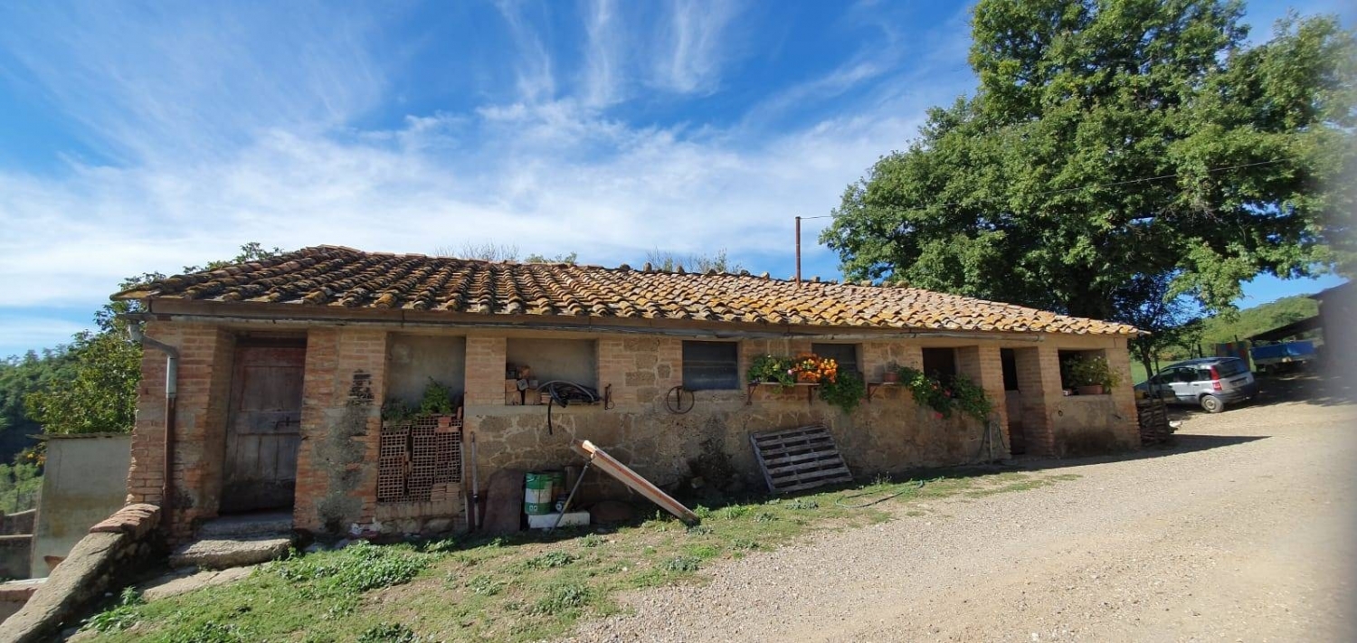 In un bel paesaggio collinare, coperto di verde, a pochi chilometri da siena l'albatros immobiliare propone in vendita casale di 600 mq complessivi, costituito da due appartamenti ,fondi e annessi.primo appartamento : 130 mq. Al primo piano, composto da cucina, disimpegno, soggiorno, tre camere, bagno.secondo appartamento : 170 mq. Al primo piano, composto da: ampia cucina, vari disimpegni, tre camere, bagno. I due appartamenti sono comunicanti. riscaldamento con caldaia a legna.al piano terra 9 locali, costituiti da: 2 autorimesse, 2 cantine, e 5 locali ad uso magazzino per un totale di 300 mq.nelle adiacenze vi sono, facenti parte della proprieta' : una porcilaia, un capannone un garage ed un fienile per complessivi 800 mq. complessivamente l'intera proprieta' e' di 1.400 mq.il casale e' situato in una bella posizione panoramica, circondato da 33 ettari di terreno di cui 22 ettari coltivativo e resto bosco .il primo proprietario e' stato il marchese chigi, come si puo' osservare dallo stemma impresso in una parete del casale stesso. Per questo motivo puo' considararsi una proprieta' storica.richiesta euro 650.000 trattabili classe energetica: g