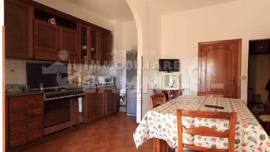 A montallese (frazione di chiusi), in zona residenziale e centrale, si vende appartamento su due livelli di 130 mq circa, soffitta e garage di 35 mq, con ingresso indipendente e senza spese condominiali. L'appartamento, che fa parte di un casale edificato in epoca remota ma che negli anni è stato ben tenuto e ristrutturato, si compone di scala d'accesso esterna con loggia, primo piano ingresso che si affaccia direttamente sulla sala da pranzo e angolo cottura, secondo piano composto da tre camere matrimoniali, camera singola ed un bagno finestrato con doccia. Accesso alla soffitta tramite scala retrattile nel disimpegno al secondo piano. Completa la proprietà il garage, di facile accesso, e la cantina collegato a quest'ultimo. Le condizioni dell'appartamento sono buone e risulta abitabile fin da subito: gli infissi sono in legno e vetro semplice, persiane in metallo, tetto rivisto nel 2005 cosù come il consolidamento dell'intero edificio. Termoautonomo a metano, ape classe g. Classe energetica: g epi: 227,4 kwh/m2 anno