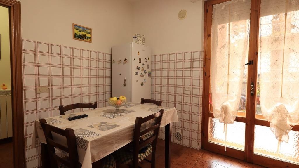 A sant'albino (frazione di montepulciano), in zona residenziale e centrale, si vende appartamento al piano rialzato con accesso indipendente di 88 mq e garage di 23 mq, in buone condizioni. L'appartamento, che fa parte di un condominio di otto unità con basse spese condominiali (circa 300 euro annui), si compone di ingresso, cucina abitabile con accesso al terrazzo, salotto/sala da pranzo con stufa a legna e secondo terrazzo, camera matrimoniale, camera singola, bagno finestrato con vasca e ampio ripostiglio utilizzabile come secondo bagno, non finestrato. Completa la proprietà il garage, di facile accesso, molto ampio e con angolo lavanderia. L'appartamento si trova in buone condizioni generali, è dotato di doppi infissi in acciaio e l'impianto di riscaldamento è stato rinnovato nel 2024. Tetto rivisto nel 2006. Ape presunta classe g. Classe energetica: g