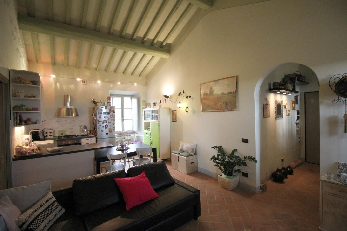 Rif: r/588 - santa colombaa km 8 da siena nord, appartamento in contesto di pregio posto al secondo ed ultimo piano e composto da ingresso con piccolo soppalco uso studio, ampio soggiorno con angolo cottura, camera matrimoniale, camera media, due bagni e ripostiglio. L'appartamento è stato ristrutturato con rifiniture di buon livello, è molto luminoso e panoramico. Vista su siena e sulla campagna circostante. Utenze indipendenti. due posti auto condominiali. Resede uso orto mq 600 circa.