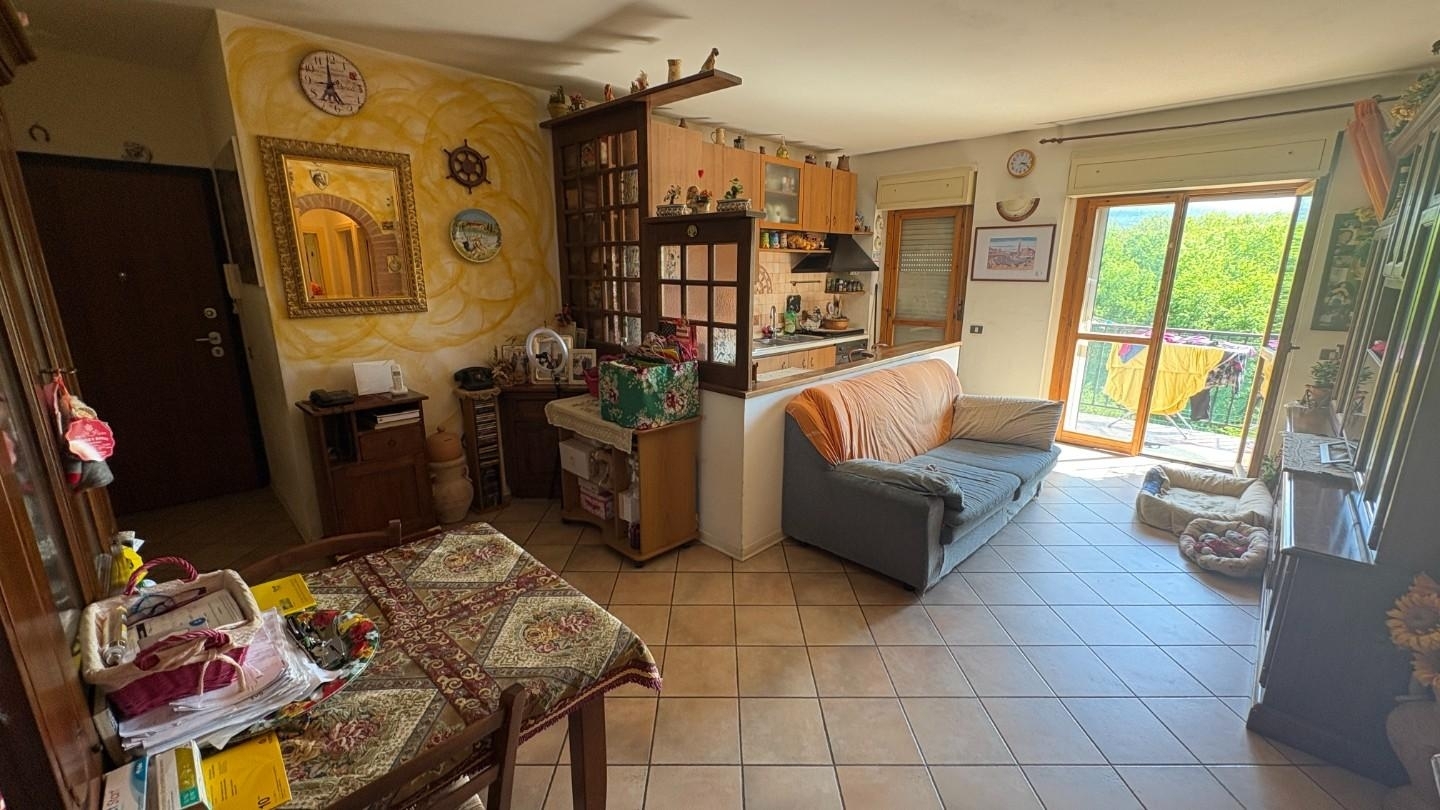 Rif: castellina scalo, posta al secondo piano di un piccolo condominio, si vende appartamento di mq 65 circa, ingresso in zona soggiorno pranzo con terrazza panoramica sul verde circostante, angolo cottura con porta finestra sulla stessa terrazza, cameretta singola, camera matrimoniale con terrazza coperta, comodo ripostiglio/lavanderia, al piano seminterrato cantina di mq 3 con finestrina di areazione, garage di mq 18 con posto moto antistante. L'appartamento a richiesta dell'acquirente viene venduto completamente arredato. Si presenta in buone condizioni in posizione areata e panoramica. Zona silenziosa ricca di parcheggi e zone verdi.