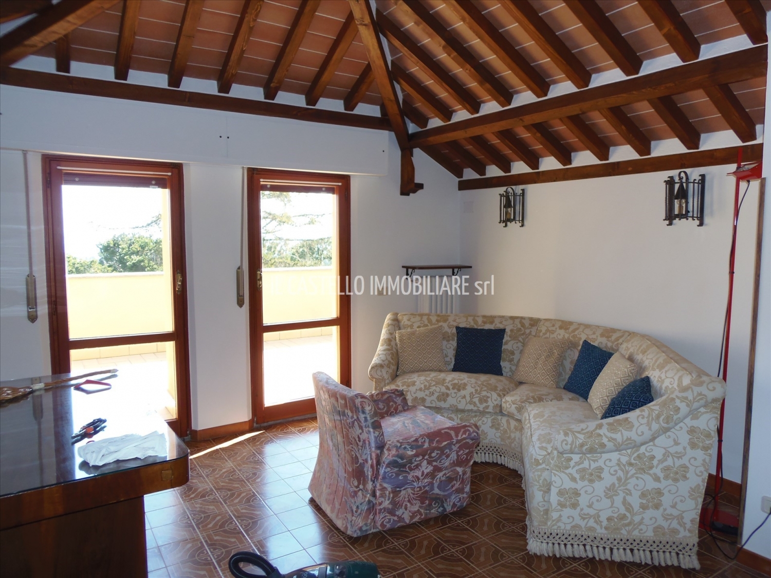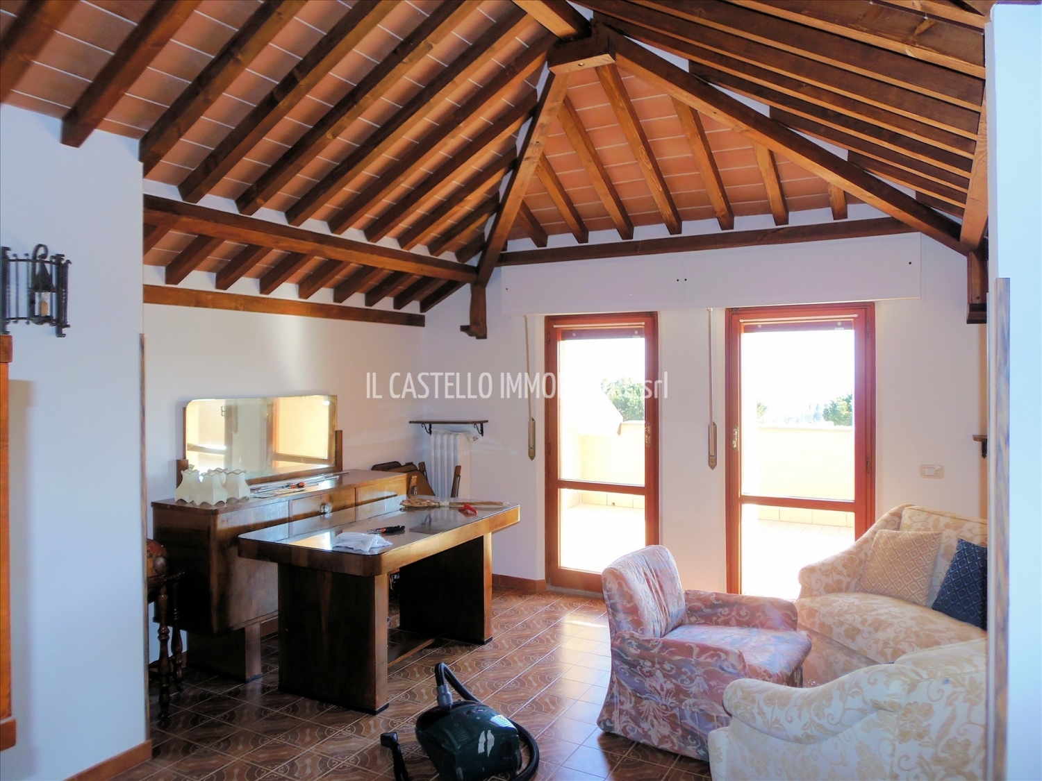 Sarteano (si), alla quota di 573 m s.l.m. Ed a 7 km dal casello autostradale a1 di chiusi/chianciano terme, vendesi appartamento in villa in bellissima posizione panoramica sul castello di sarteano e sulla vallata. L'appartamento ubicato al piano primo (superficie catastale mq 109), tutto su un unico livello ha accesso da scala comune (con altri due appartamenti, sotto). Ingresso, soggiorno-pranzo con ampia terrazza abitabile, cucinotto con terrazza abitabile, ripostiglio, bagno con doccia, camera matrimoniale con ampia terrazza, camera doppia ed altre 2 terrazze a tasca nel tetto oltre a due stanze soffitta. L'appartamento risulta molto luminoso e gode di affacci su quattro lati per una esposizione prevalente verso sud/est. L'appartamento dispone di una porzione di giardino comune con gli altri, sul lato ovest dell'accesso, mentre sul lato sud dispone di una porzione di giardino / orto esclusiva di circa mq 700 da frazionare, all'interno del quale sarà possibile in futuro chiedere un accesso carrabile anche per vari parcheggi. Comunque c'è facile possibilità di parcheggio nei dintorni del fabbricato. All'interno della porzione comune di giardino è presente un piccolo annesso in legno, diviso in due stanze indipendenti, una di queste è pertinenza di questo appartamento. Il fabbricato è stato costruito nei primi anni '70 e nel tempo è stato ben conservato e mantenuto; tetto, terrazze e facciata sono stati rifatti recentemente. Internamente si presenta in buono stato di conservazione generale, impianti e bagno rifatti. Per il riscaldamento è presente un impianto con radiatori in ghisa alimentato da caldaia a metano. Le finestre sono in legno di abete di douglas, con vetri doppi. Le tapparelle avvolgibili sono in alluminio coibentato e verniciato. La pavimentazione è in ceramica monocottura. Richiesta euro 165.000. (classe energetica: g e ipe: 217,87 kwh/m2anno). Possibilità di acquistare anche l'appartamento sotto o tutta la villa. rif. Ap174