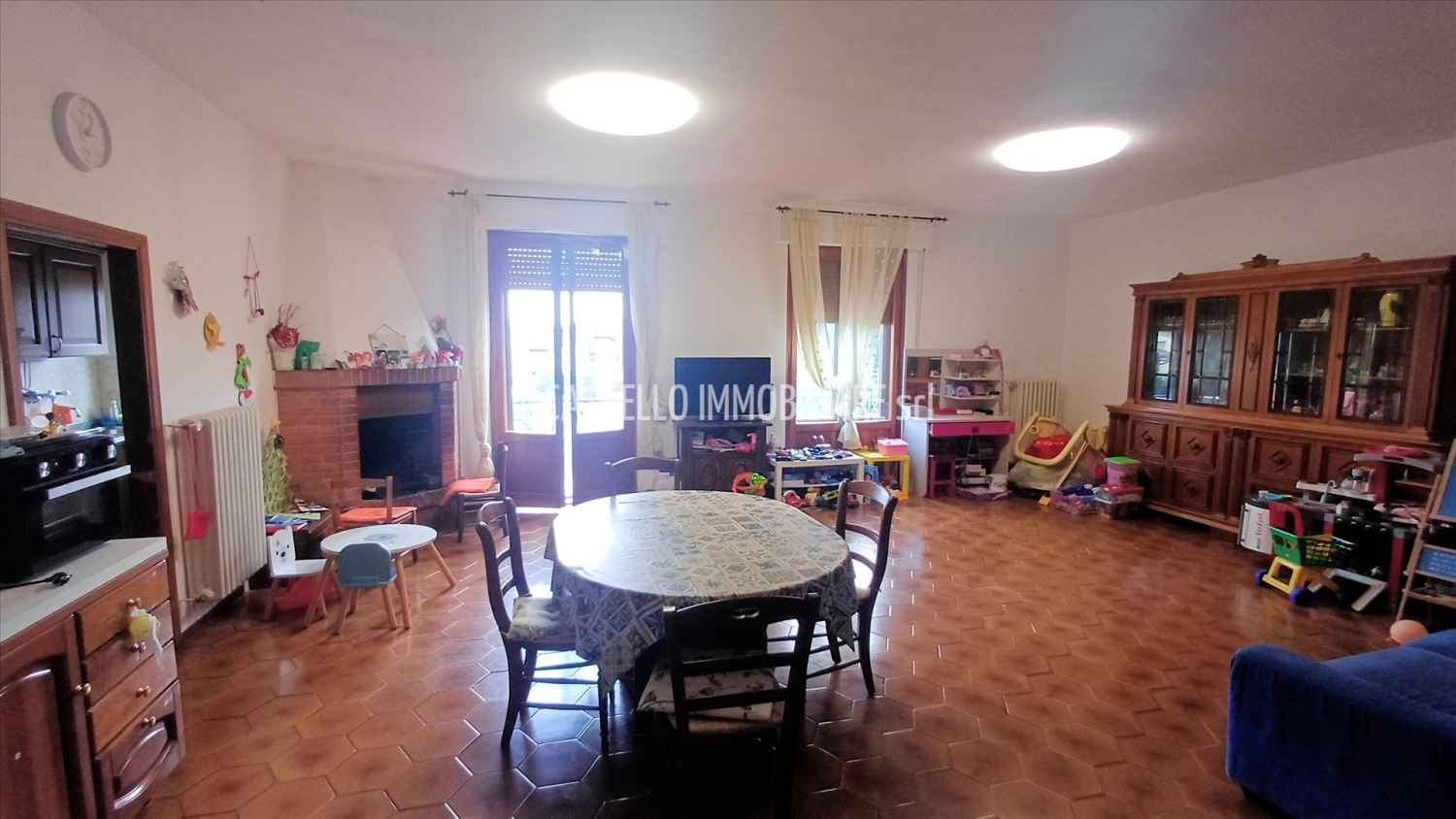 Sarteano (si), alla quota di 573 m s.l.m. Ed a 6 km dal casello autostradale a1 di chiusi/chianciano terme, vendesi appartamento al primo ed ultimo piano di un fabbricato comune con pochi altri, avente accesso indipendente e disponibilità del resede comune. Posizione comodissima a due passi dal centro del paese. Luminoso e con vista panoramica dalla grande terrazza, affaccio prevalente verso sud/est. La superficie catastale complessiva commerciale dell'immobile è di circa mq 210 (in considerazione dell'appartamento di mq 198 e del magazzino (alto e finestrato) al piano seminterrato di mq 23 con sottoscala. l'appartamento dispone di accesso da scala privata di accesso al primo piano, balcone, ingresso, grande soggiorno di oltre 40 mq con doppia porta / finestra e caminetto, balcone e terrazza abitabile (di circa mq 30), cucina con dispensa, camera matrimoniale, bagno con doccia, disimpegno, due camere matrimoniali, bagno con vasca, stanza pluriuso (ora usata come sgombero e lavanderia), altra camera matrimoniale o studio avente secondo accesso autonomo dal retro attraverso un diritto di passo su scale e pianerottolo esterni della proprietà adiacente. Secondo le necessità si possono ricavare fino a 6 camere matrimoniali. La soffitta ha accesso da botola retrattile sul solaio del corridoio.al piano seminterrato, scendendo la stessa rampa di scale privata, dispone di un sottoscala per ripostiglio e di un magazzino (collegato all'autorimessa, vendibile a parte, tramite una porta), inoltre nell'androne comune delle autorimesse dispone anche di una cantina / ripostiglio a doppia altezza.facile possibilità di parcheggio nei dintorni del fabbricato, grazie anche ad un parcheggio pubblico adiacente. L'appartamento fa parte di un immobile che è stato costruito agli inizi degli anni '70, poi ristrutturato e suddiviso in appartamenti, oggi ancora in condizioni abitabili. L'appartamento è dotato di impianto autonomo di riscaldamento a metano (con radiatori in ghisa e tubazioni in rame. La zona è coperta da fibra. Le finestre sono in legno di abete di douglas, con vetri semplici e doppio infisso in alluminio anodizzato. Le tapparelle avvolgibili sono in pvc. La pavimentazione di tutto il piano risulta in ceramica monocottura. Richiesta euro 265.000 trattabili. (classe energetica: g e ipe > 300 kwh/m2anno). (possibilità di acquistare a parte anche una autorimessa di mq 29 al prezzo di euro 25.000 e una porzione di giardino esclusiva della superficie di mq 620 al prezzo di euro 38.000 il tutto visibile nella sezione delle fotografie e con ottima predisposizione alla trattativa !) rif. Ap930.
